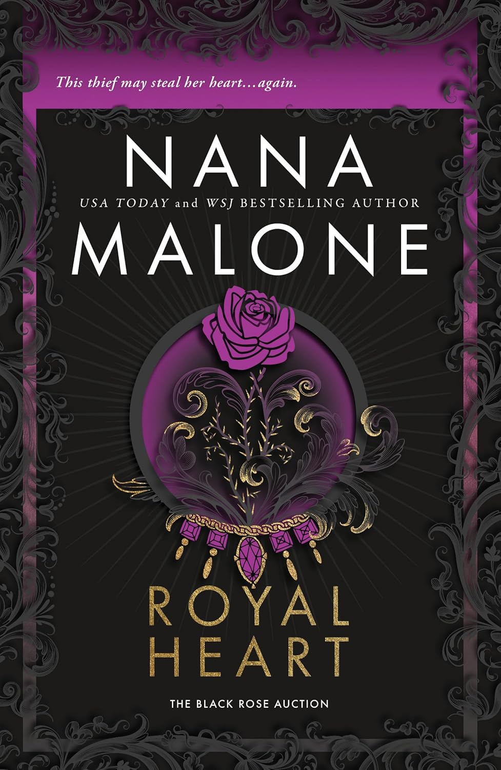 In ROYAL HEART by Nana Malone, a Beauty and the Beast remix, a woman must work with the thief she blames for her father's death to steal back a priceless royal necklace. But the dark depths of the auction are no place for unwary hearts, and soon she may be the one stolen after all…