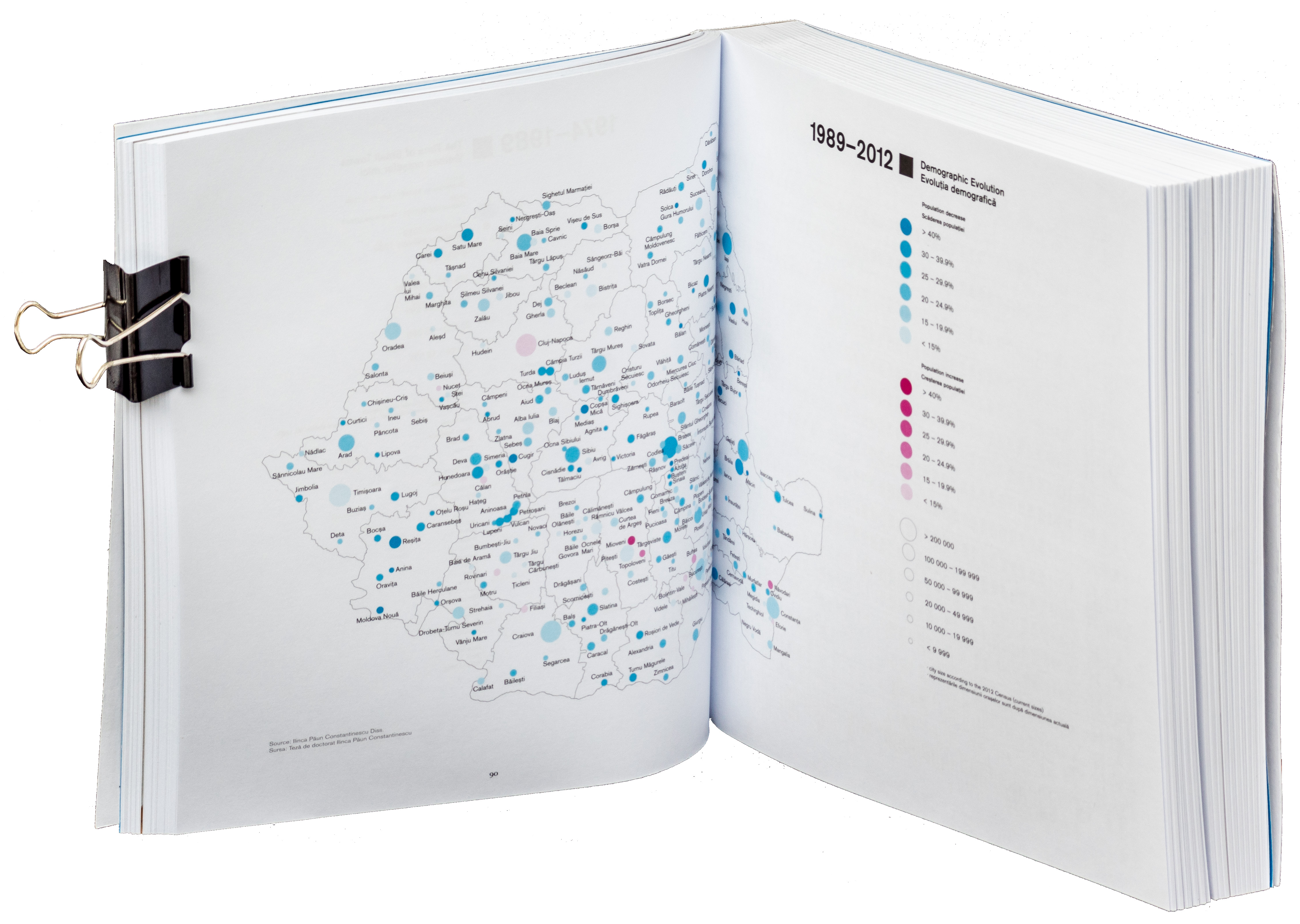 The Shrinking Cities in Romania project, conceived by architect and curator Ilinca Păun Constantinescu, took shape after a research that has begun more than ten years ago. Written in English and Romanian and internationally distributed, the two 800 pages volumes discuss the shrinkage of Romanian cities, as a widespread phenomenon. The publication follows the structure of the exhibition presented at the MNAC in 2016, a pioneering initiative to raise awareness about an acute and pervasive, yet too little discussed matter, and substantially complements its contents through extensive articles by distinguished researchers. Although mostly perceived as a negative phenomenon, shrinkage can be a vector for modernization and innovation, re-use, alternative resources, artistic creation, and reevaluation of interpersonal relationships.
