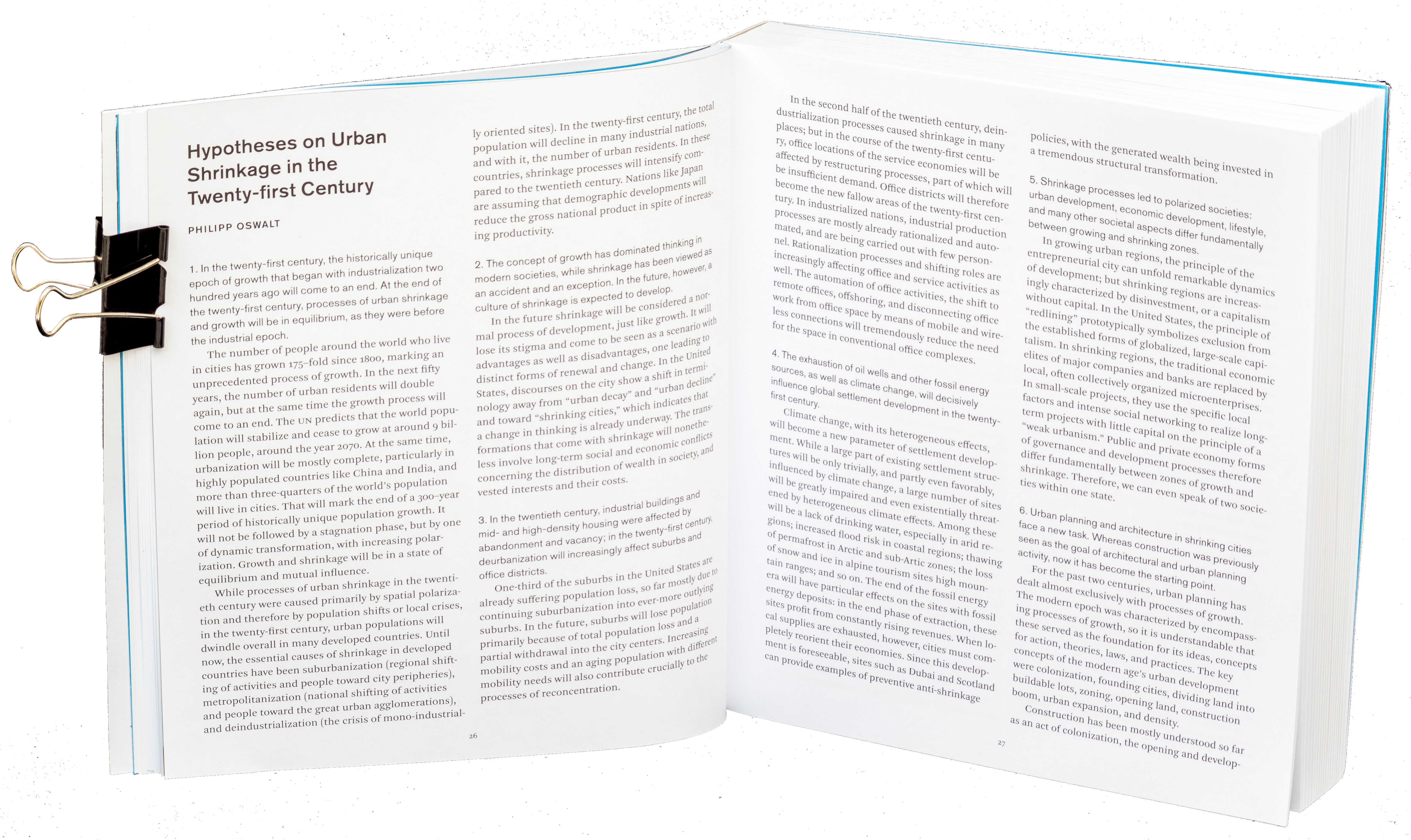 Ceea ce întreprinde acest volum este o lucrare unică, prima din România care pune laolaltă cercetări, idei și acțiuni privind fenomenul românesc de contracție urbană. Ne găsim în fața unui format de carte ambiguu, concomitent colectiv și de autor. La prima vedere este un repertoriu de idei și autori în dialog, la întâlnirea dintre domenii, perspective și mijloace de intervenție specific și nespecifice – un volum colectiv. Însă, siguranța teoretică cu care coordonatoarea regizează dialogul și prezența ei auctorială importantă, îi conferă și dimensiunea unui „volum de autor”. Totodată, fuziunea dintre rigoarea cercetării științifice, insolitul neliniștii artistice și generozitatea activismului social îi dezvăluie o cuprindere cu ținte multiple, care face formatul cu atât mai greu încadrabil în obișnuințele disciplinare ale României contemporane.