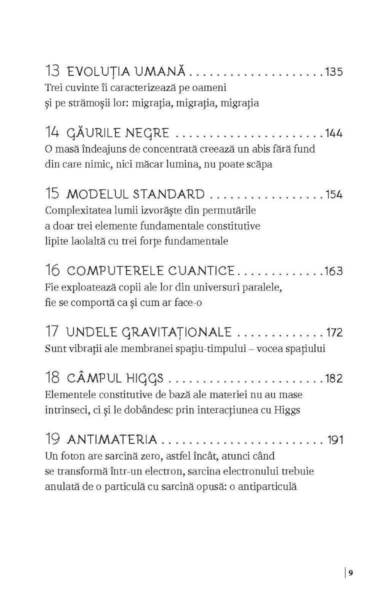 Autorul de bestsellere Marcus Chown condensează, într-o manieră extraordinară, conceptul central al acelor părți ale științei despre care ar trebui să știm cu toții puțin mai mult, scoţând în evidenţă singurul lucru care, odată înţeles, va face ca totul să fie mult mai clar.