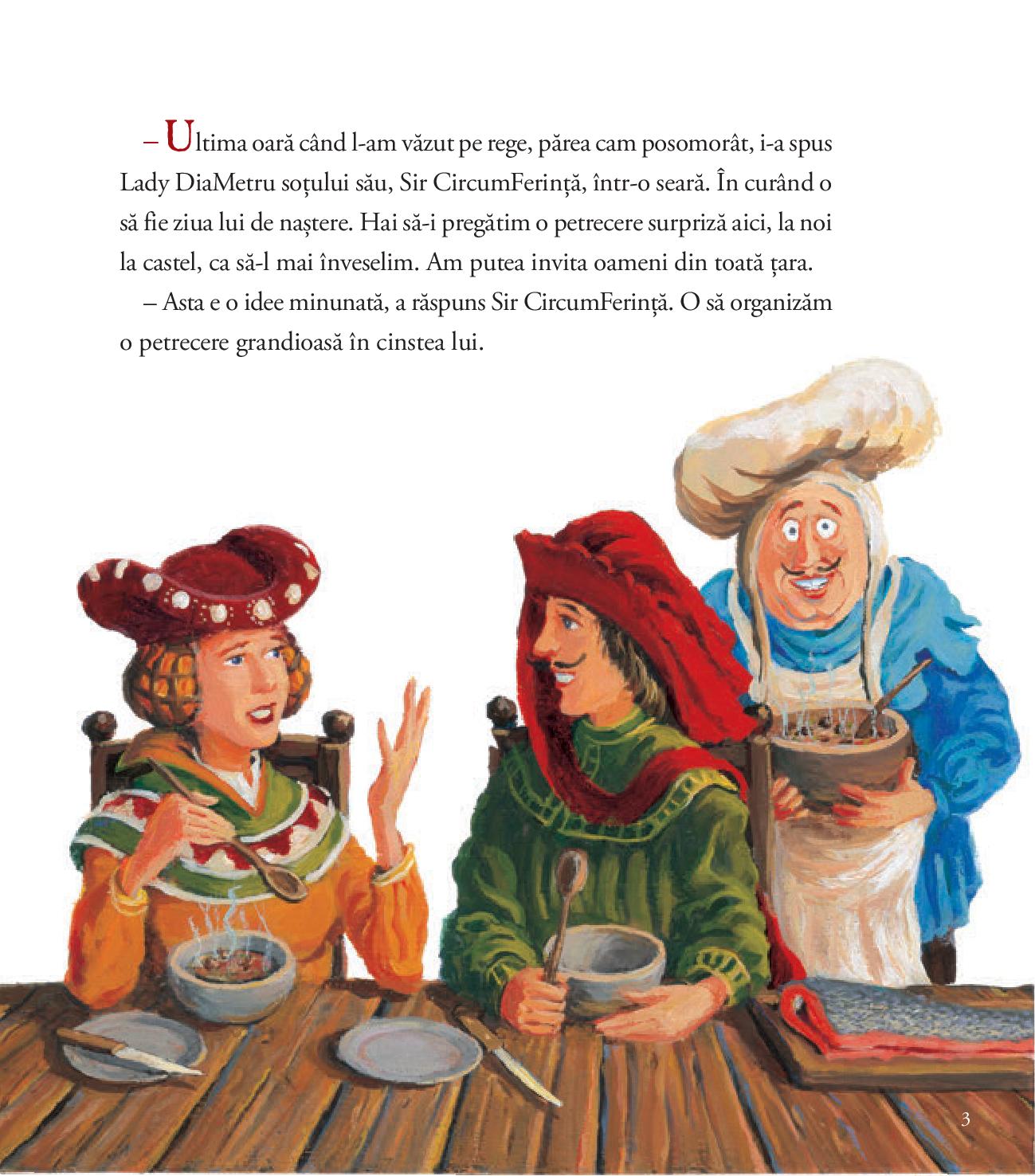 La castelul lor, Sir CircumFerinta si Lady DiaMetru pun la cale o petrecere surpriza pentru ziua regelui Arthur, dar planurile lor se transforma intr-o uriasa incurcatura. Vin tot mai multi oaspeti, pana cand castelul se umple cu totul, de la turnul inalt la santul adanc de aparare! Iar oaspetii trebuie hraniti! Pentru asta, gazdele trebuie sa-i numere, ca sa stie cate portii trebuie pregatite.