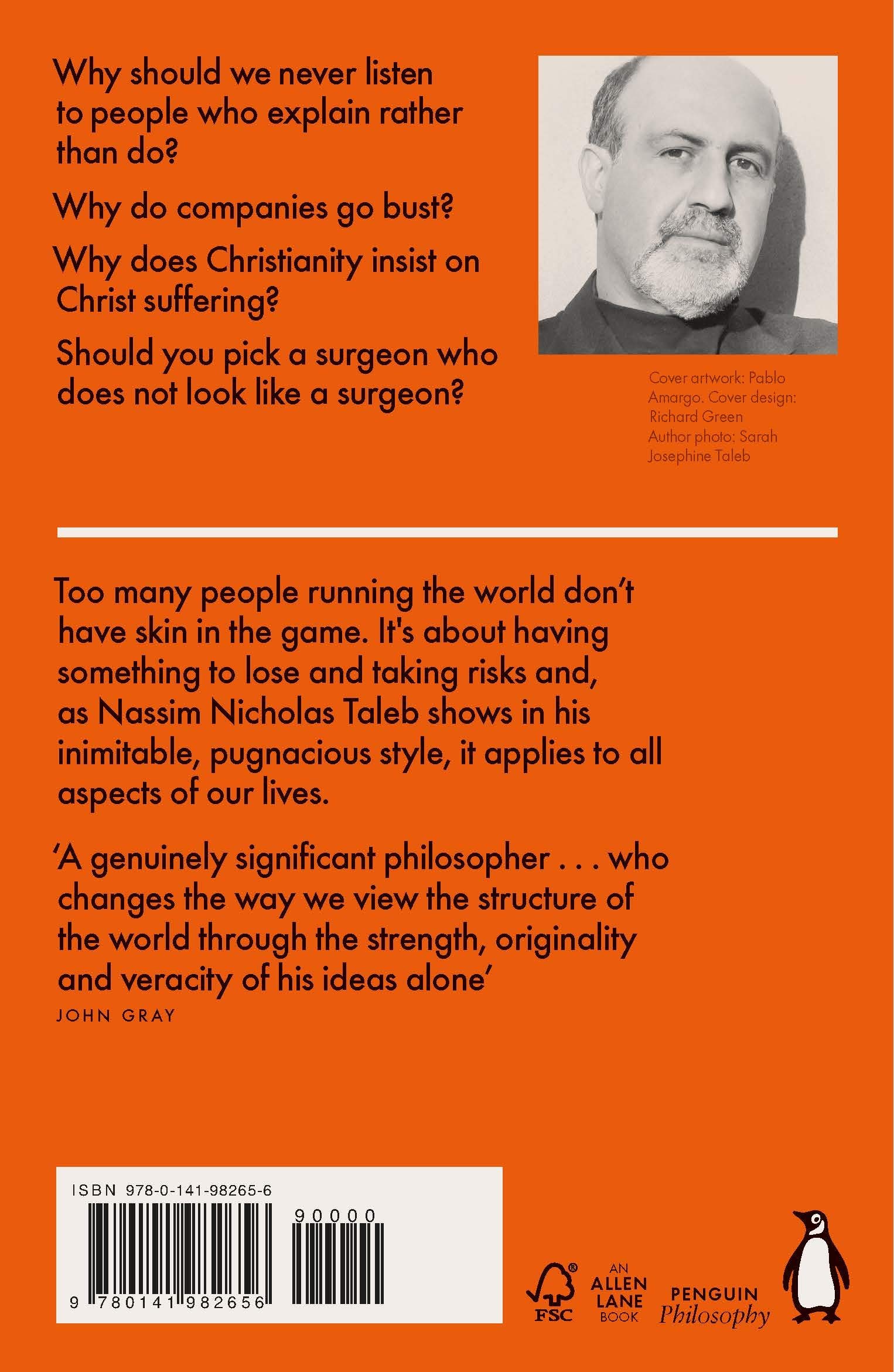 The answer: too many people running the world don't have skin in the game. In his inimitable, pugnacious style, Nassim Nicholas Taleb shows that skin in the game applies to all aspects of our lives. It's about having something to lose and taking a risk. Citizens, lab experimenters, artisans, political activists and hedge fund traders all have skin in the game. Policy wonks, corporate executives, theoreticians, bankers and most journalists don't.