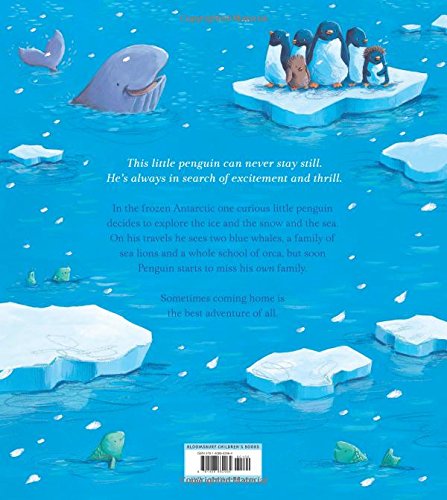 In the frozen Antarctic, one curious little penguin decides to explore the ice and the snow and the sea. On his travels he sees two blue whales, a family of sea lions and a whole school of orca, but soon Penguin starts to miss his own family. Sometimes coming home is the best adventure of all.