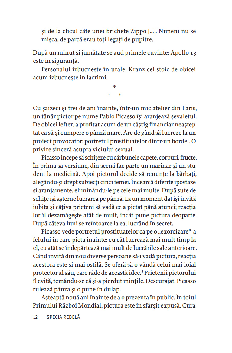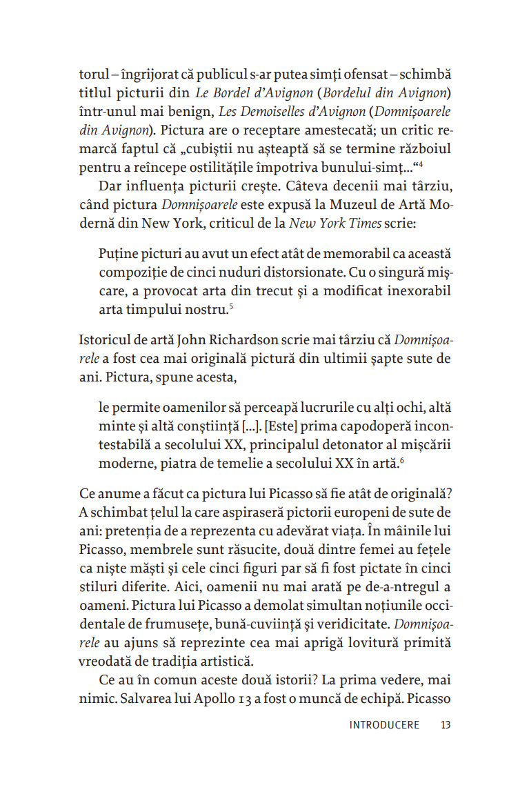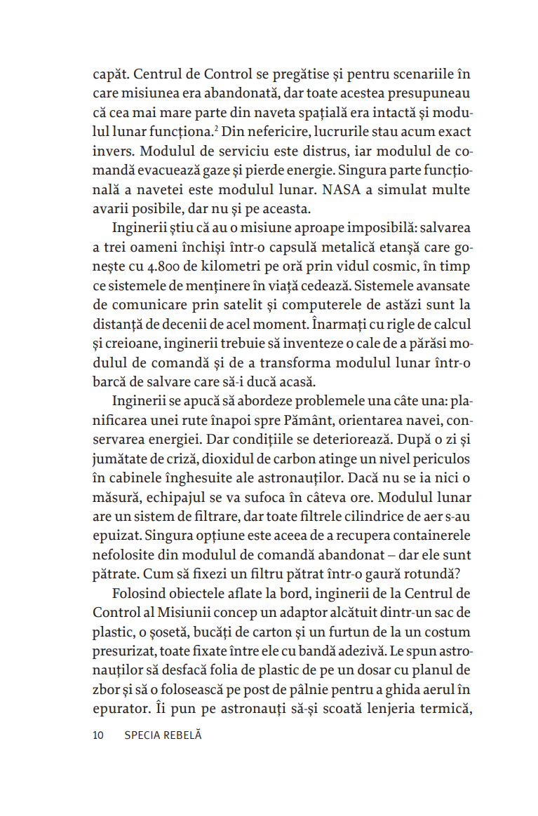 „Suntem membrii unui vast arbore filogenetic de specii animale. Dar de ce nu fac vacile coregrafie? De ce nu proiectează veverițele lifturi pentru vârful copacilor? De ce nu inventează aligatorii ambarcațiuni rapide? O ajustare evoluționistă a algoritmilor care rulează în creierul uman ne-a permis să absorbim lumea și să creăm o versiune ce-ar fi dacă a acesteia. Această carte este despre acel software creativ: cum funcționează, de ce îl avem, ce facem cu el și unde ne poartă. Vom arăta cum dorința de a ne încălca propriile așteptări duce la inventivitatea năvalnică a speciei noastre. Uitându-ne la tapiseria artelor, științei și tehnologiei, putem vedea urzeala inovațiilor care leagă între ele disciplinele.“ — DAVID EAGLEMAN, ANTHONY BRANDT