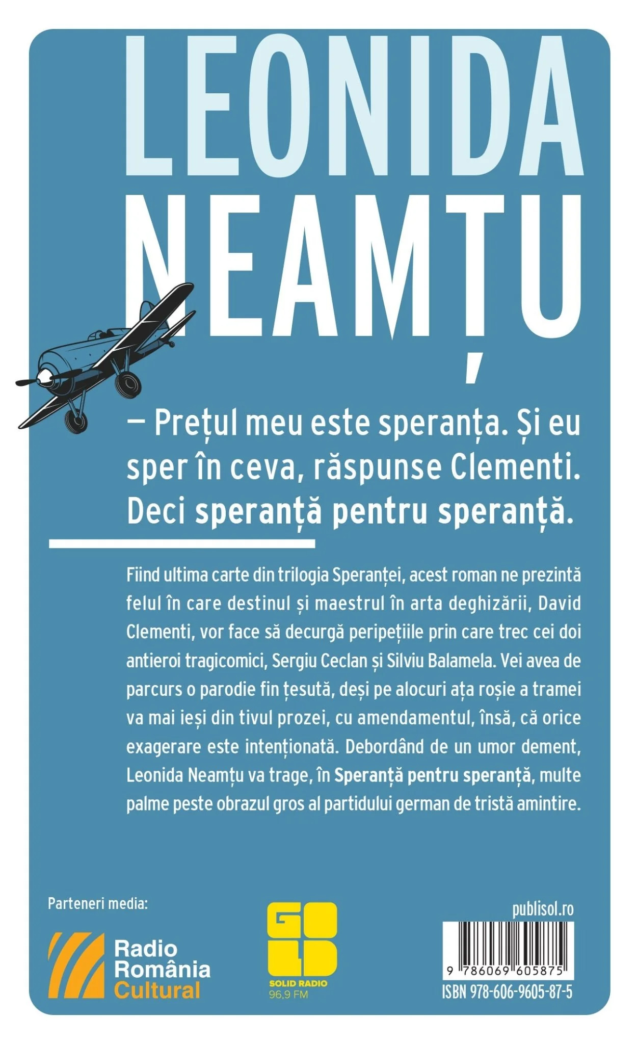Speranța pentru speranță de Leonida Neamțu este un roman profund și introspectiv, care explorează teme de reziliență, credință și căutarea sensului în perioade dificile. Povestea urmărește viața unui grup de personaje diverse, fiecare luptându-se cu propriile lor demoni și încercând să găsească un scop și o direcție în mijlocul haosului.