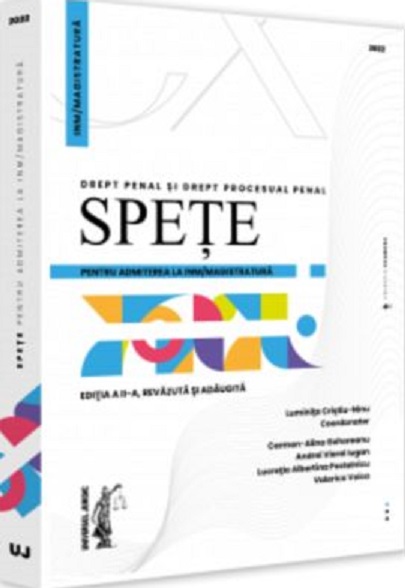 Lucrarea de fața, realizata de un colectiv de practicieni, judecatori cu experiența in materia dreptului penal și a procedurii penale, insumeaza 37 de teste laborioase, incluzand spețe cu un grad ridicat de complexitate, pentru verificarea cunoștințelor de drept penal și drept procesual penal, insoțite de baremele de rezolvare, cu largi explicații și trimiteri la textele de lege, la doctrina și jurisprudența. Culegerea reprezinta un suport incontestabil pentru absolvenții facultaților de drept care se pregatesc pentru admiterea la Institutul Național al Magistraturii, ajutand la dezvoltarea cunoștințelor teoretice și practice, a capacitații de argumentare și a raționamentului logico-juridic.