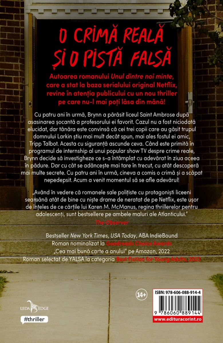 „Având în vedere că romanele sale polițiste cu protagoniști liceeni seamănă atât de bine cu niște drame de neratat de pe Netflix, este ușor de înțeles de ce cărțile lui Karen M. McManus, regina thrillerelor pentru adolescenți, sunt bestsellere pe ambele maluri ale Atlanticului.” - The Observer