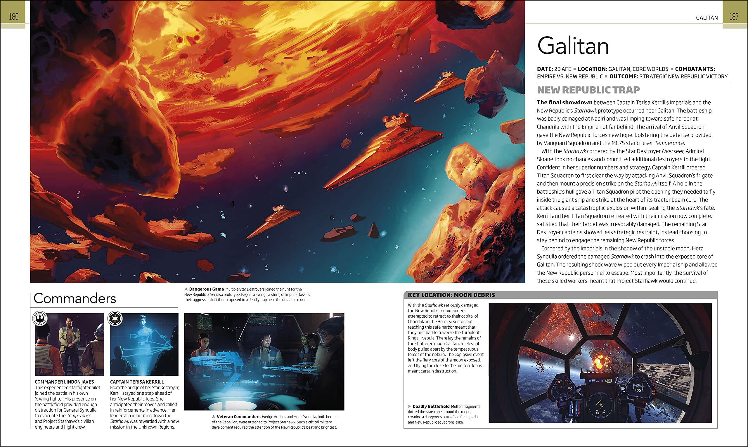 Enter a galaxy ravaged by conflict and discover the complete story of the epic struggles that define the Star Wars movies. This ambitious book presents major galactic conflicts from an in-world "historical" perspective: each battle is depicted with captivating imagery, explored with newly commissioned maps, and explained through detailed analysis of tactics, famous commanders, legendary warriors, key moments, and its impact on wider galactic history.