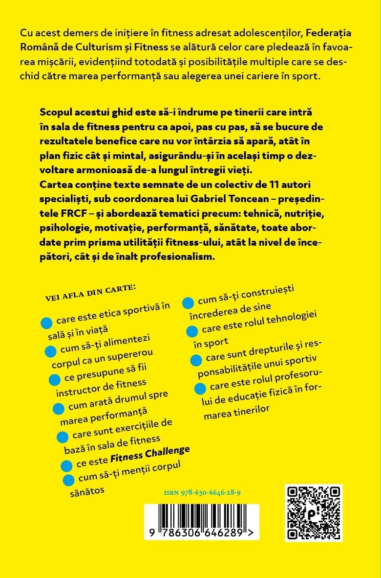 Scopul acestui ghid este să-i îndrume pe tinerii care intră în sala de fitness pentru ca apoi, pas cu pas, să se bucure de rezultatele benefice care nu vor întârzia să apară, atât în plan fizic cât și mintal, asigurându-și în același timp o dezvoltare armonioasă de-a lungul întregii vieți.