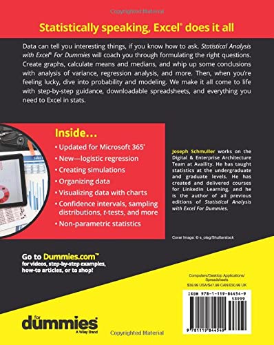Microsoft Excel offers numerous possibilities for statistical analysis-and you don't have to be a math wizard to unlock them. In Statistical Analysis with Excel For Dummies, fully updated for the 2021 version of Excel, you'll hit the ground running with straightforward techniques and practical guidance to unlock the power of statistics in Excel.