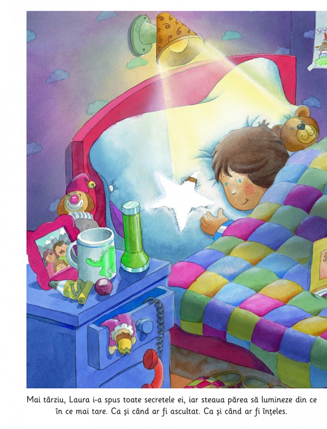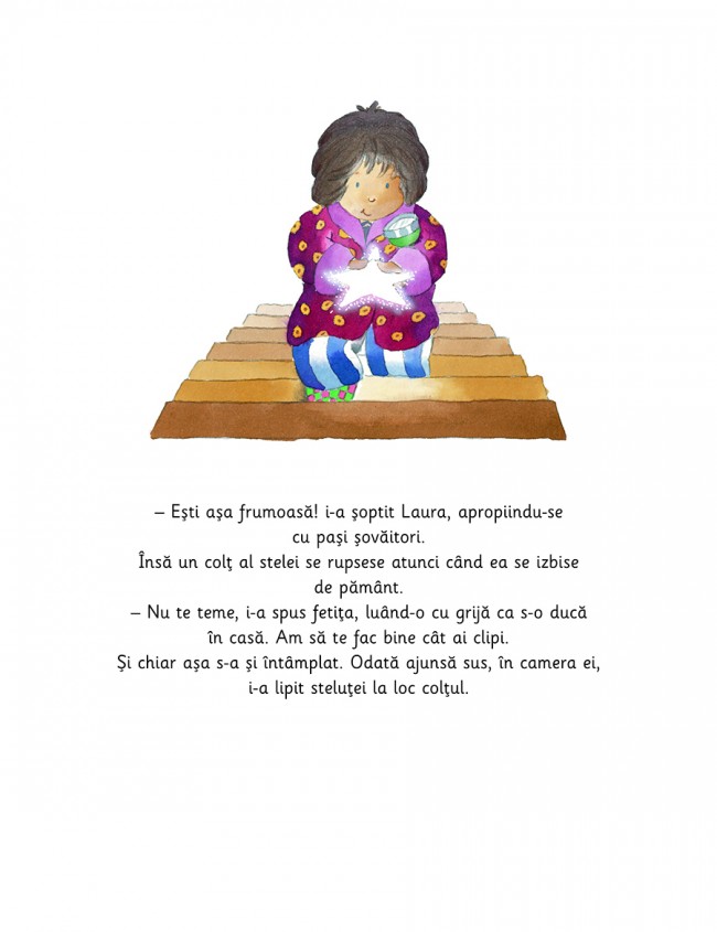 Într-o noapte, Laura vede cum o stea se desprinde din cer şi cade chiar pe trotuarul din faţa casei în care locuieşte. Bucuroasă, o ia şi o ascunde în camera ei, dar a doua zi dimineaţă steaua dispare fără urmă. O poveste magică despre prietenie şi despre dorinţe care se împlinesc, prima dintr-o serie de aventuri pline de farmec.