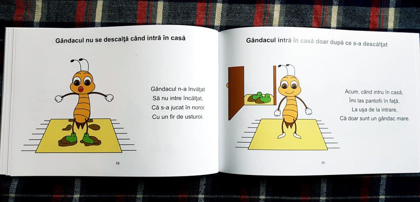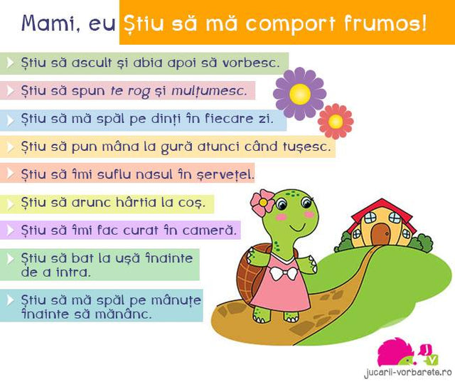 Invatare prin Poezie: Fiecare comportament este descris in versuri amuzante, captand usor atentia copiilor.