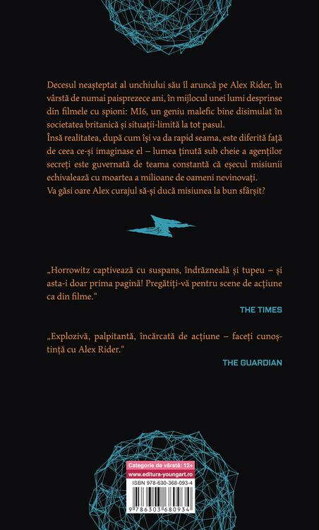 Decesul neașteptat al unchiului său îl aruncă pe Alex Rider, în vârstă de numai paisprezece ani, în mijlocul unei lumi desprinse din filmele cu spioni: MI6, un geniu malefic bine disimulat în societatea britanică și situații-limită la tot pasul.