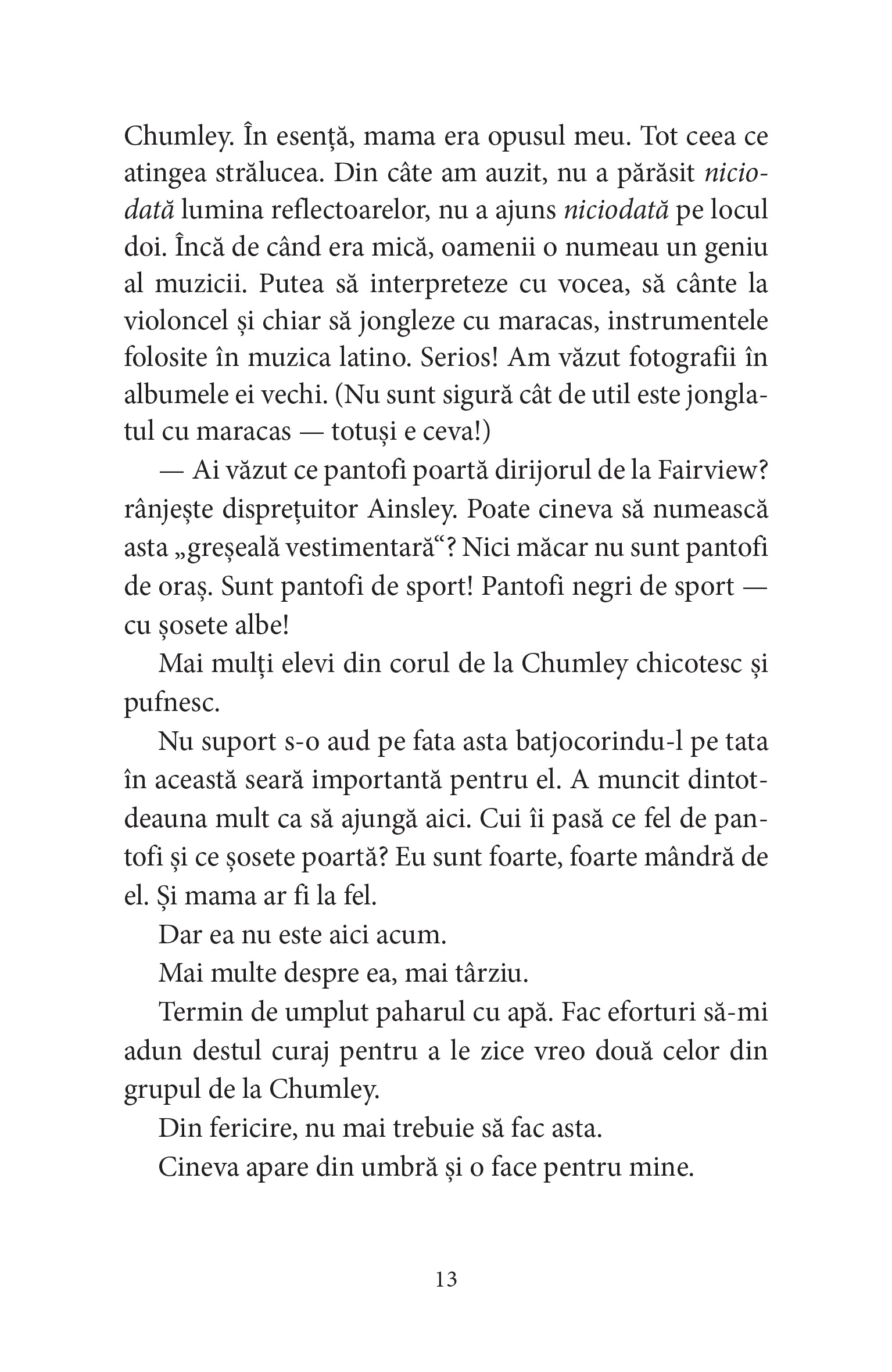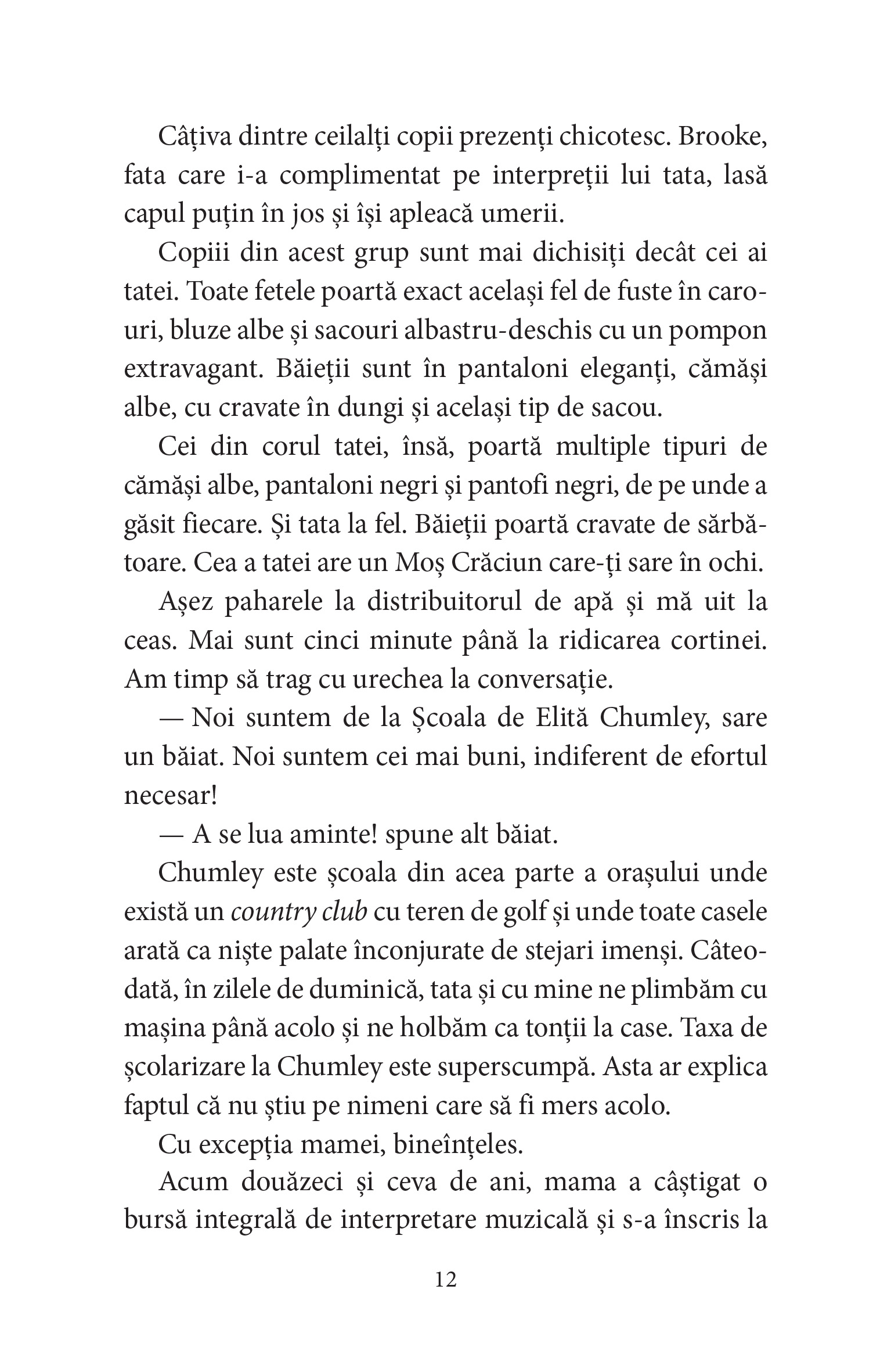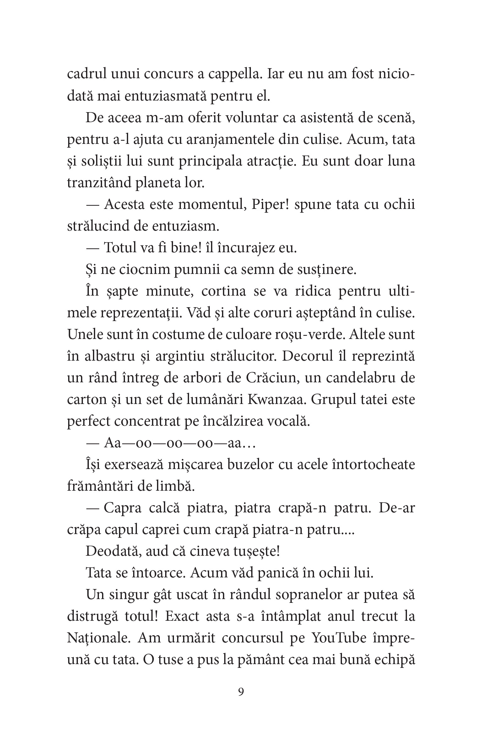 Strălucește! ar putea fi lozinca eroinei lui Piper – Nellie Dumont Frissé: astronaut, astronom și prezentatoare a unei emisiuni TV –, însă fetița, la cei doisprezece ani ai săi, știe adevărul: unii oameni sunt născuți să strălucească, iar ea nu se numără printre aceștia. Asta nu i-a fost niciodată mai limpede decât acum, când noua slujbă a tatălui său i-a adus pe amândoi la școala privată de elită Chumley, unde fiecare pare să exceleze la ceva și unde Piper cu siguranță nu se poate integra.