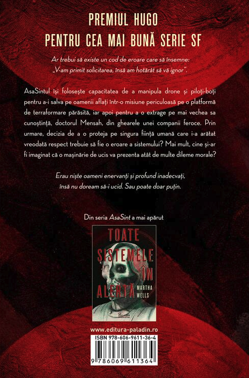 AsaSintul îşi folosește capacitatea de a manipula drone și piloți-boți pentru a-i salva pe oamenii aflați într-o misiune periculoasă pe o platformă de terraformare părăsită, iar apoi pentru a o extrage pe mai vechea sa cunoştinţă, doctorul Mensah, din ghearele unei companii feroce. Prin urmare, decizia de a o proteja pe singura fiinţă umană care i-a arătat vreodată respect trebuie să fie o eroare a sistemului? Mai mult, cine şi-ar fi imaginat că o maşinărie de ucis va prezenta atât de multe dileme morale?