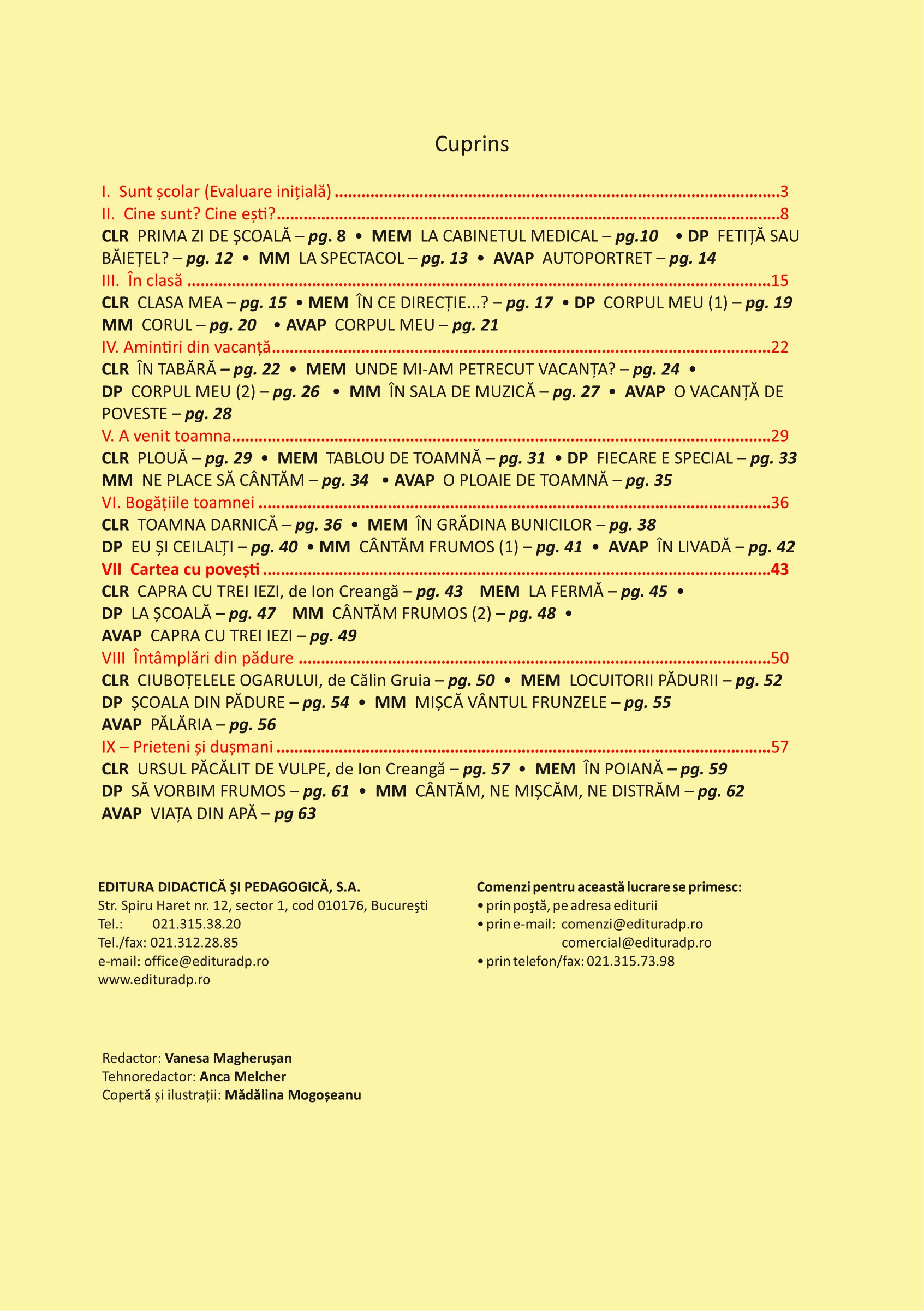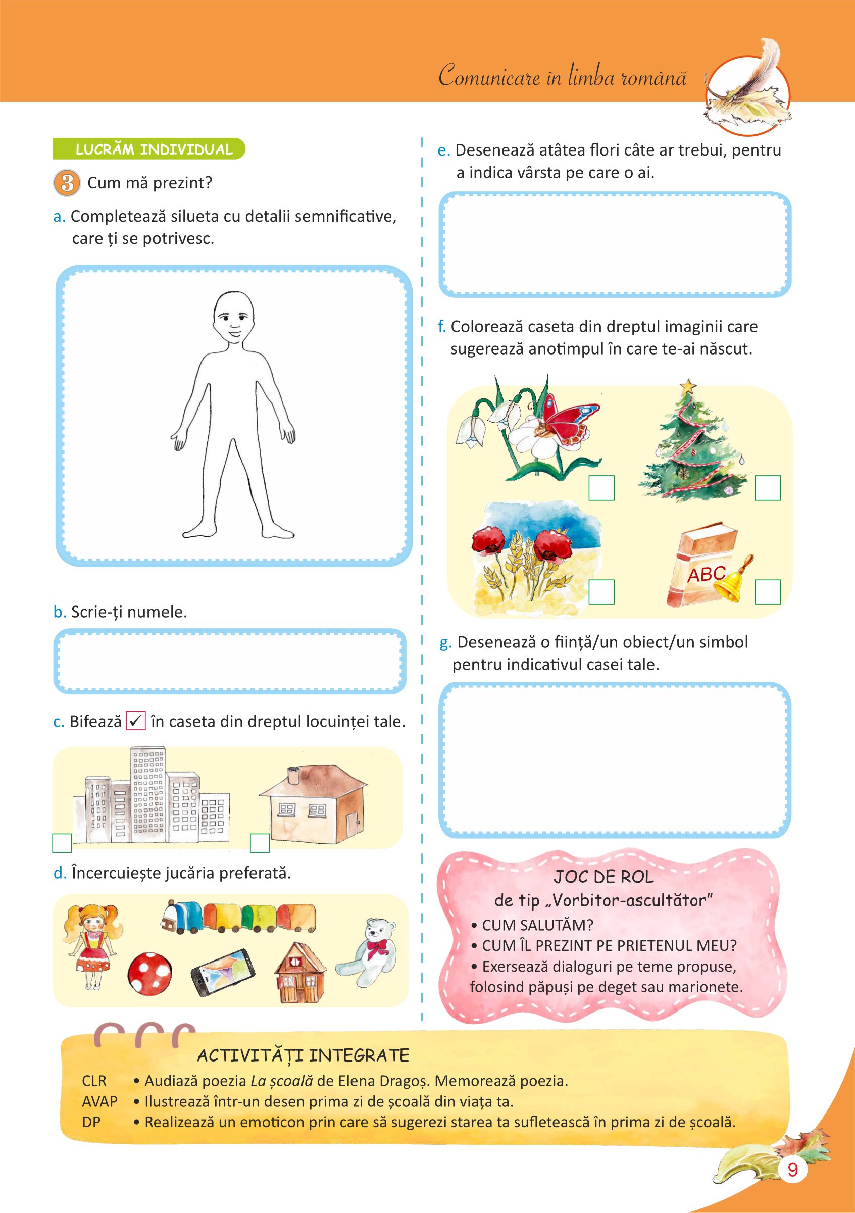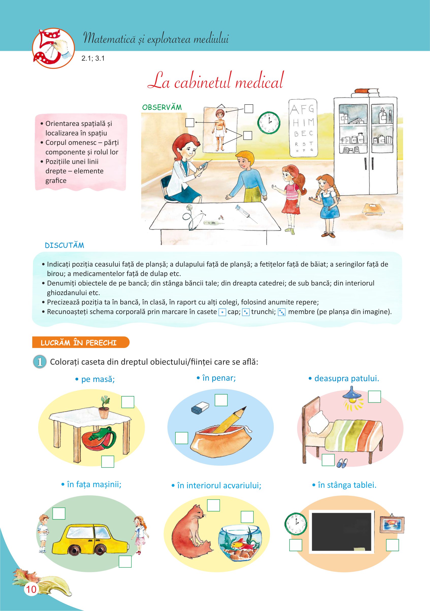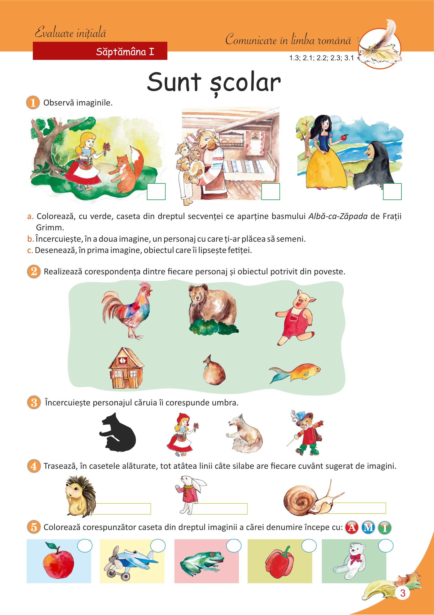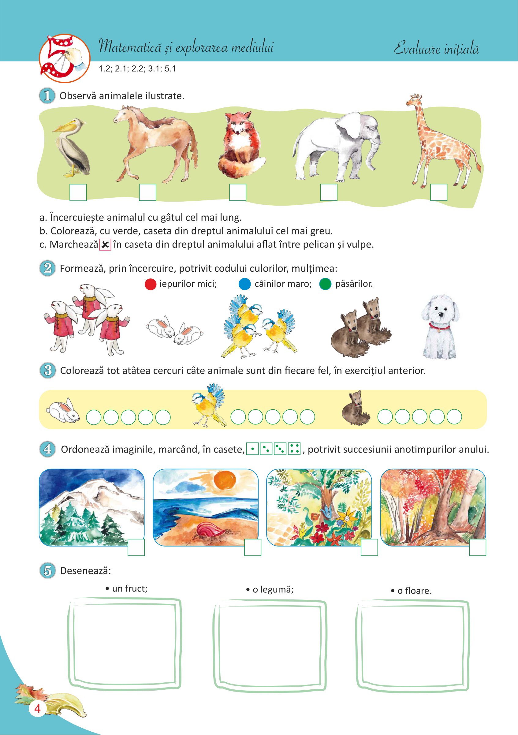 Limba si literatura romana, Matematica, Stiinte ale naturii, Muzica si miscare, Arte vizuale, Dezvoltare personala