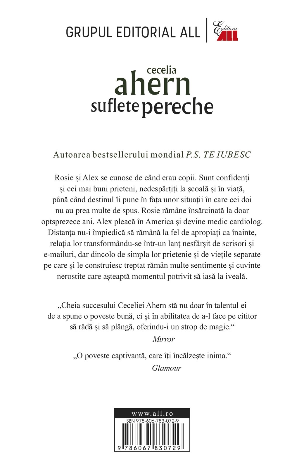 În 2014, romanul Suflete pereche a fost ecranizat la Hollywood sub denumirea „Love, Rosie”, cu Sam Claflin și Lily Collins în rolurile principale.