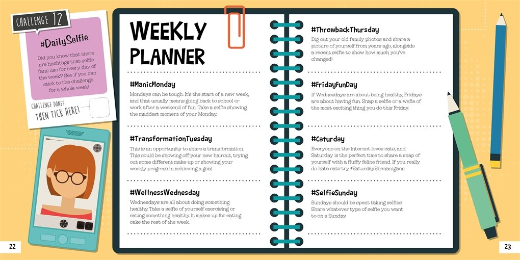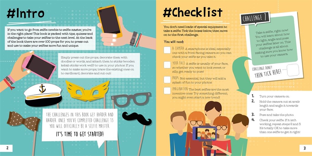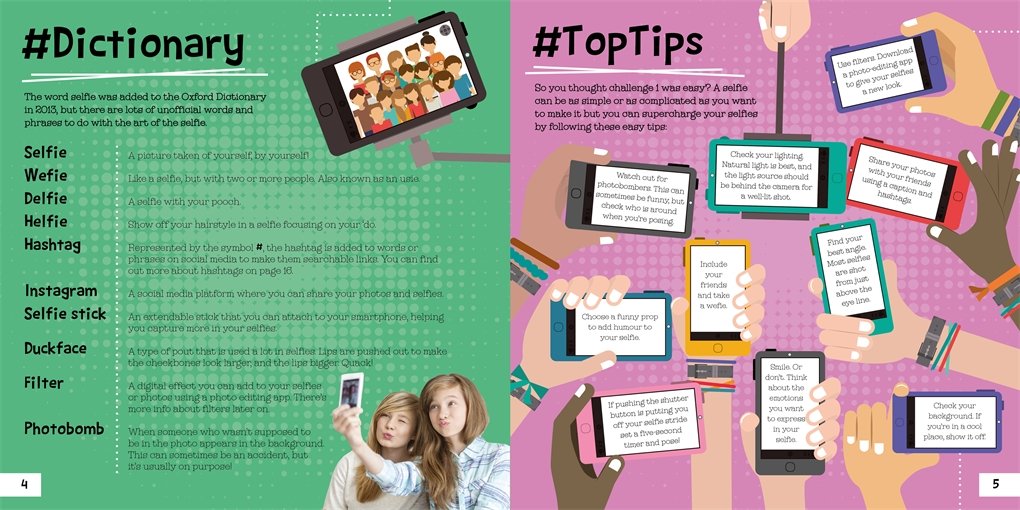 #Suit Your Selfie is filled with top tips on taking the best selfies and becoming a true selfie master. There's loads of information on how to pose, edit and upload your photos, plus there are 16 pages of press-out props to add a bit of fun to your selfies and wefies! Press-outs include a double-sided photo frame, lots of funny moustaches, fancy dress outfits and thought bubbles. There are also challenges throughout the book to complete on your journey to becoming a selfie master. Can you rise to all of them?