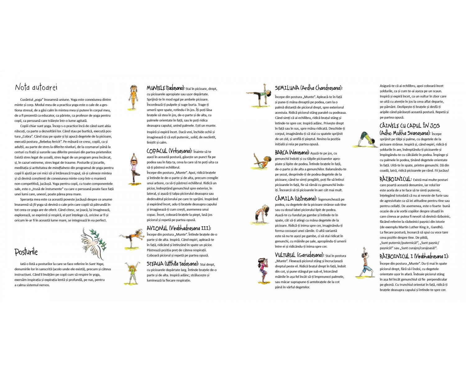 Cartea încurajează mișcarea, iar nota autorului și informațiile despre fiecare postură de la sfârșitul cărții sunt instrumente didactice excelente.