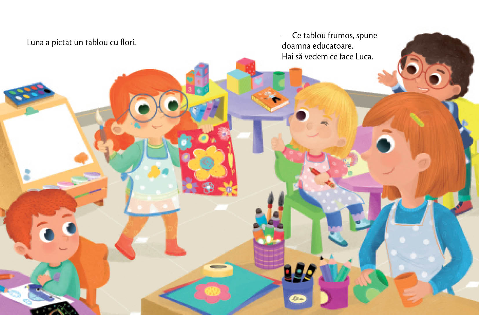 Distrează-te citind despre aventurile celor doi prieteni Luca și Luna, care descoperă cât este de distractiv să meargă la grădiniță.