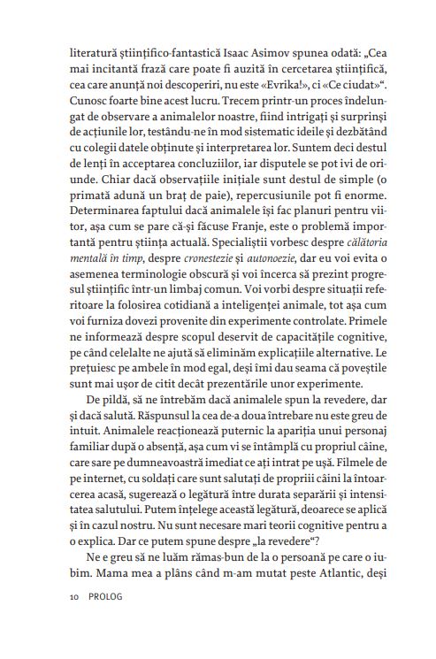 Suntem îndeajuns de inteligenți pentru a înțelege inteligența animalelor? ne poartă într-o călătorie fascinantă prin lumea surprinzătoare a cogniției animalelor, care nu sunt niște simple mașinării ce răspund la stimuli și reacționează mânate numai de instinct. Autorul ne arată felul în care cercetările din ultimele decenii au descoperit că primatele își pot face planuri pentru viitor și pot folosi unelte, că delfinii sunt capabili de empatie și se pot striga pe nume, că unele păsări au o memorie vizuală uimitoare și chiar se pot recunoaște în oglindă, sau că elefanții își pot da seama ce sex au oamenii cu care interacționează. Cartea lui Frans de Waal ne va face astfel să reexaminăm tot ceea ce credeam că știm atât despre inteligența animalelor, cât și despre a oamenilor.