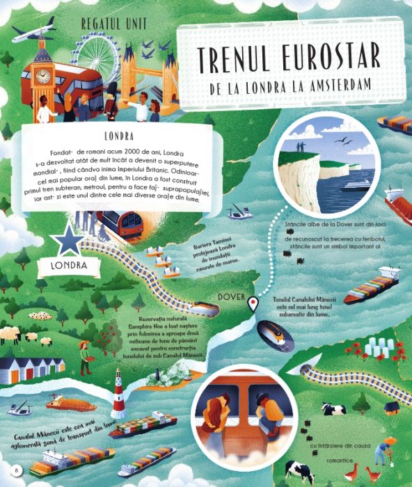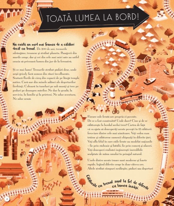 Cartea de față te ajută să afli felul în care căile ferate au modelat, de-a lungul timpului, națiunile și cum o călătorie cu trenul ne conectează unii cu alții. De asemenea, vei avea prilejul să vezi realizări inginerești incredibile ce acum fac parte din peisajul natural.
