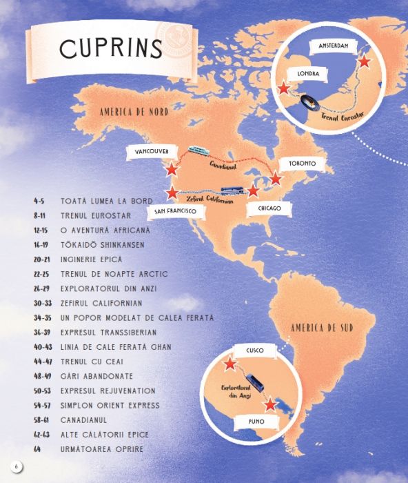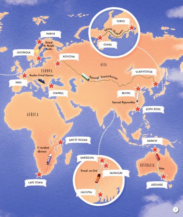 Dacă da, urcă-te într-un tren și pregătește-te pentru cea mai spectaculoasă călătorie feroviară, care te va duce în toate colțurile lumii, de la Cercul Polar până în Pacificul de Sud, din Silicon Valley până în savanele africane și în multe alte locuri.
