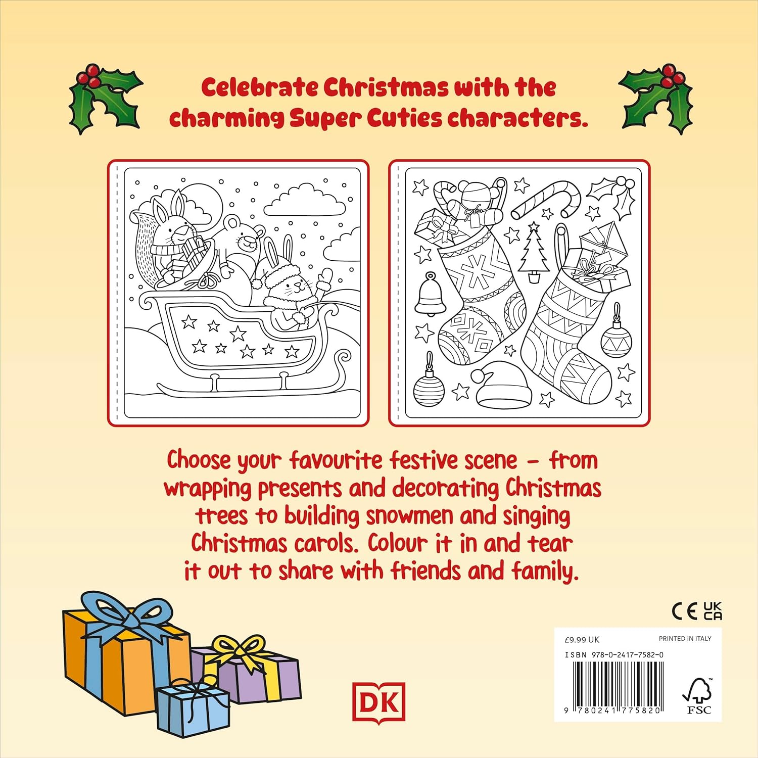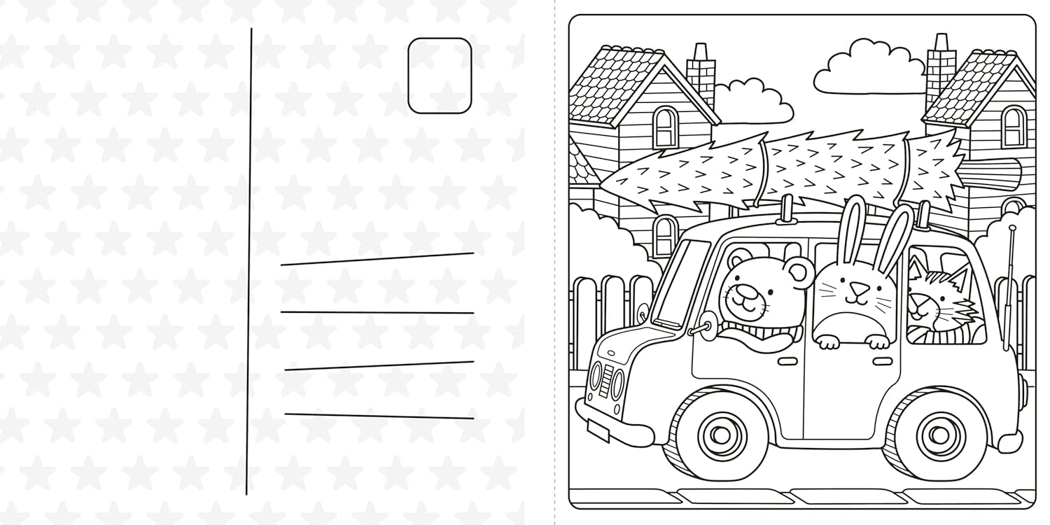 This Christmas colouring book features: