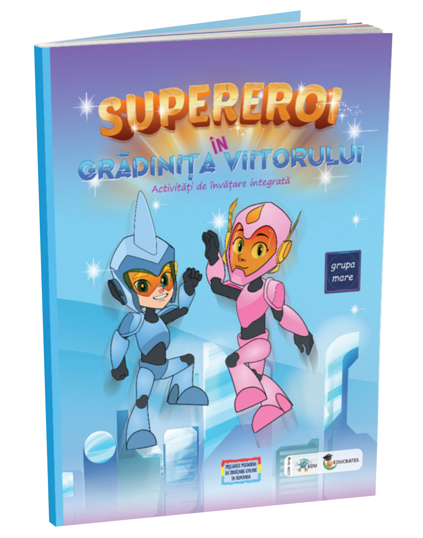Ți-ai imaginat cum arată o grădiniță a viitorului? Flying board-uri și aero-mașini care duc copiii la grădiniță, holograme și tot felul de super-tehnologii te așteaptă în noul pachet educațional ”Supereroi în Grădinița Viitorului” (activități de învățare integrată pentru grupa mare).