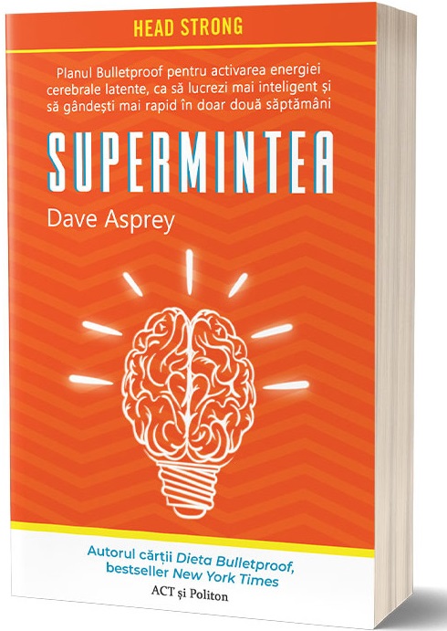 Supermintea: Planul Bulletproof pentru activarea energiei cerebrale latente, ca să lucrezi mai inteligent și să gândești mai rapid în doar două săptămâni / Head Strong: The Bulletproof Plan to Activate Untapped Brain Energy to Work Smarter and Think Faster-in Just Two Weeks de Dave Asprey este cartea care te va ajuta să atingi un nivel de performanță mentală mai ridicat. Dave Asprey îți va arăta ce schimbări relativ simple poți face în stilul tău de viață pentru a ajunge la un nivel de energie cerebrală mai mare, pentru a te concentra mai bine, a reține mai multe informații și a gândi mai creativ.