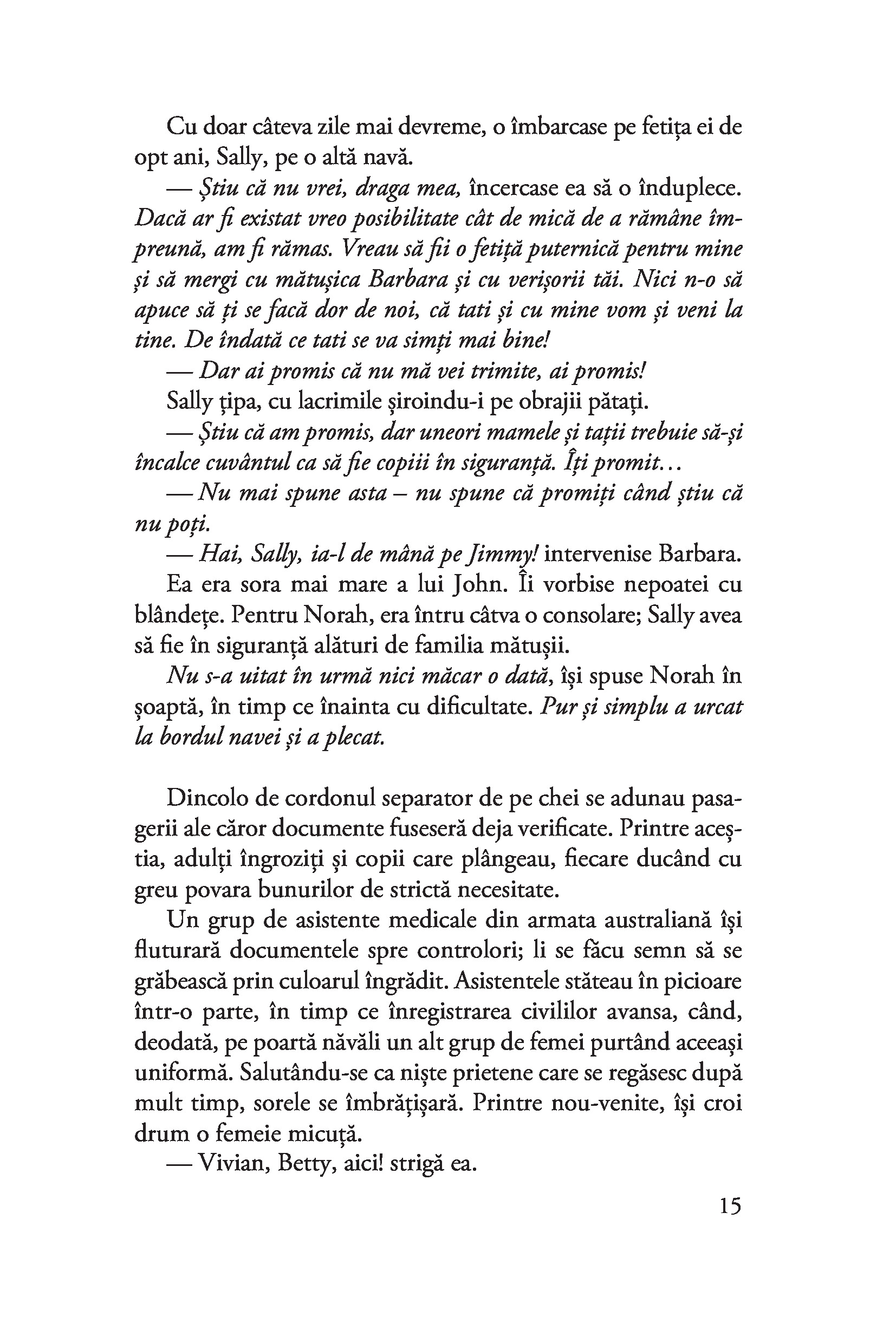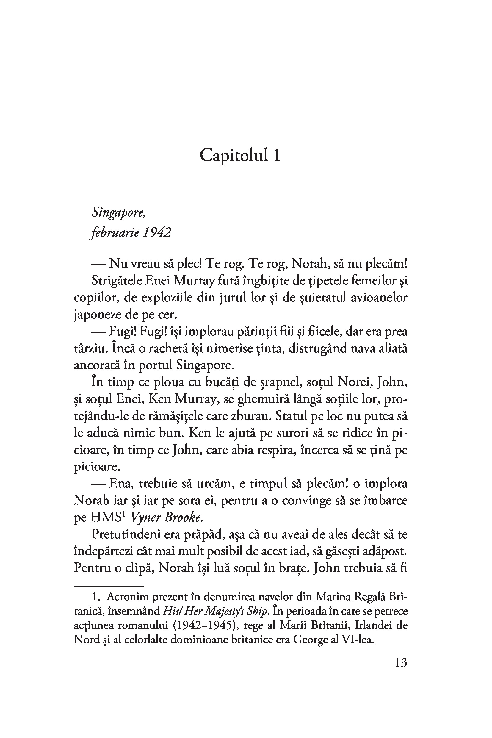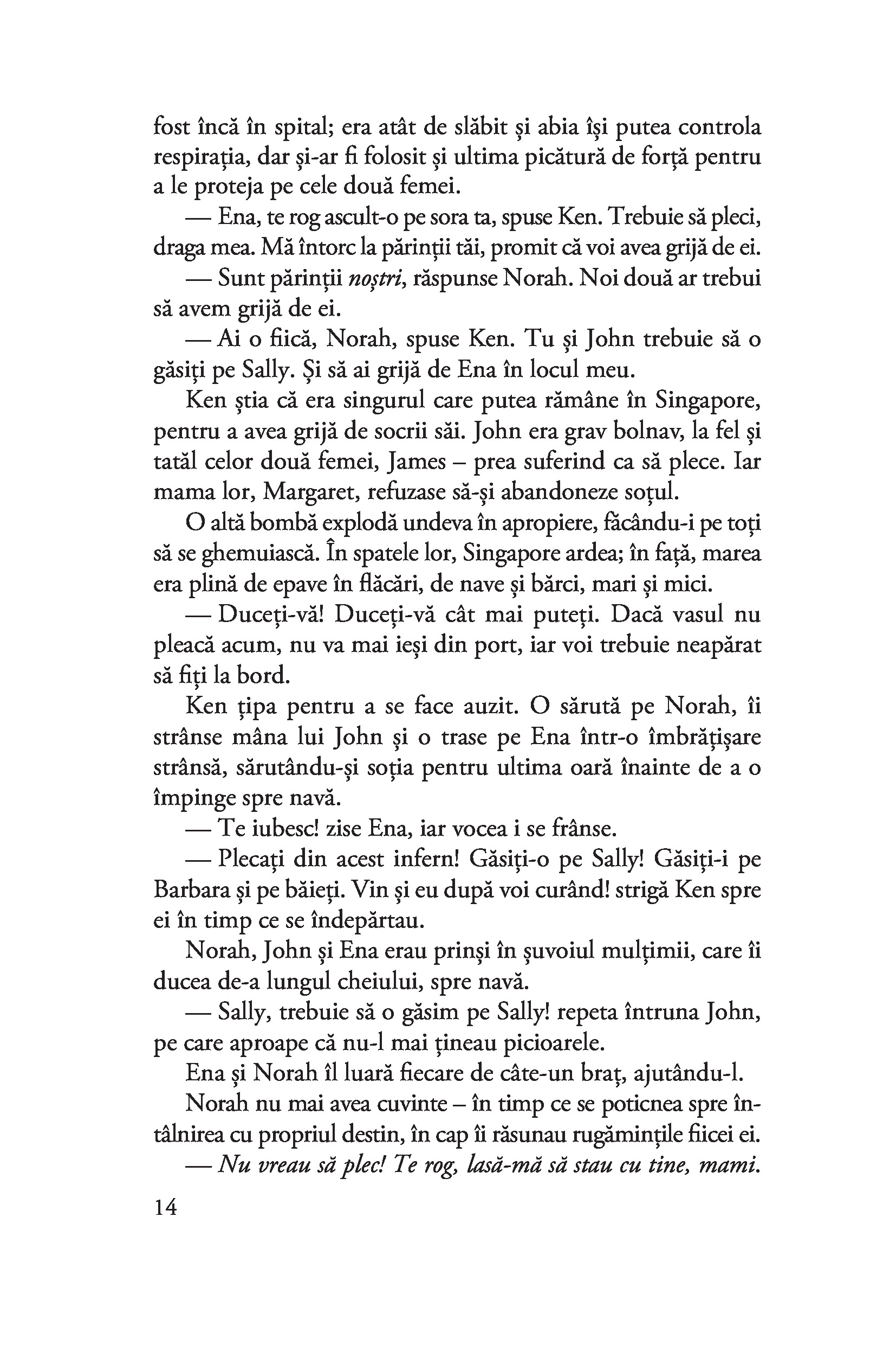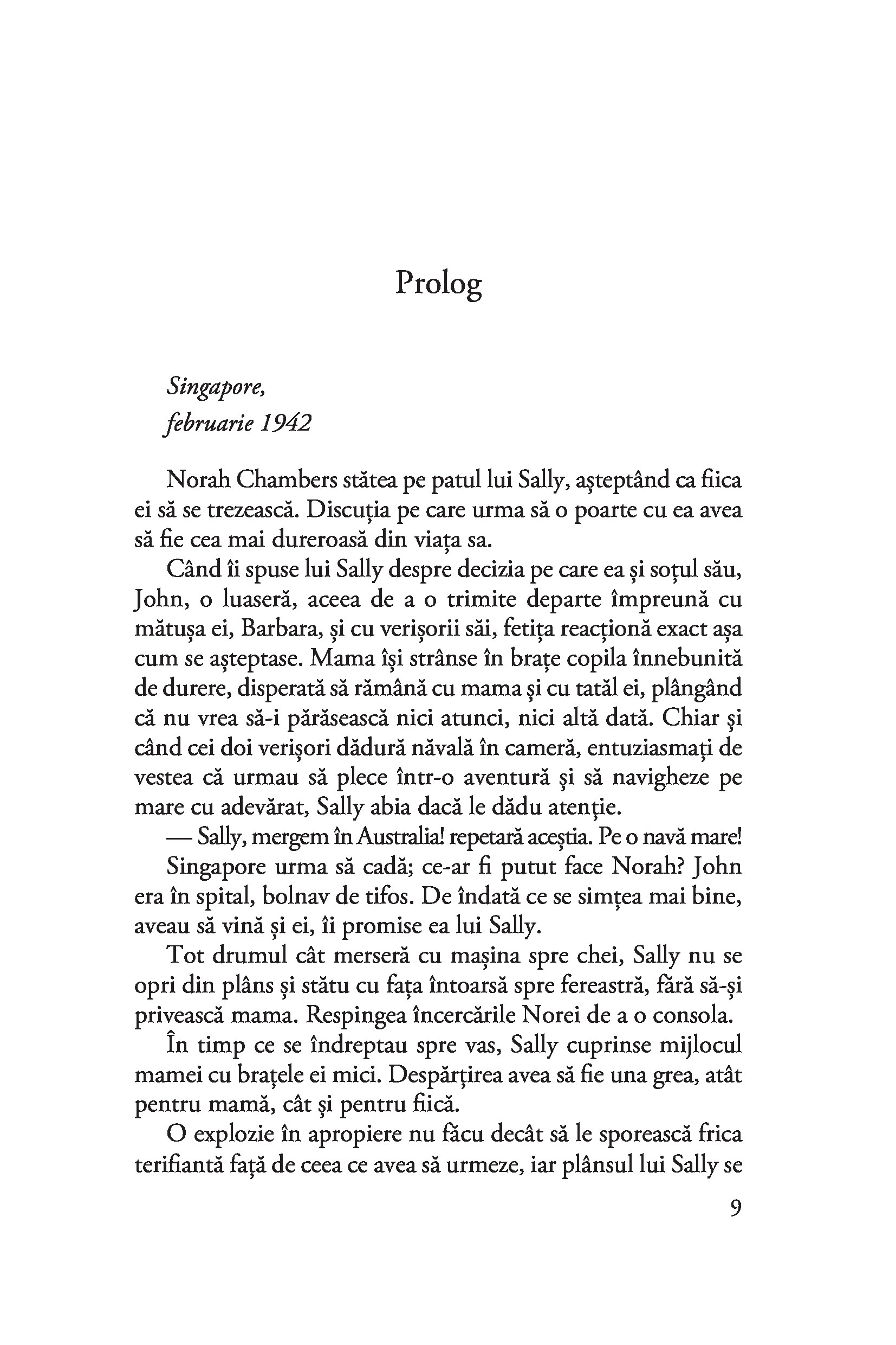Pe măsură ce japonezii se apropie de Singapore, în tumultul celui de-Al Doilea Război Mondial, Norah Chambers decide să își îmbarce fiica de opt ani, alături de rude, pe un vas care părăsește colonia. Norah și sora ei, Ena, rămân să aibă grijă de John, soțul bolnav al Norei, sperând că într-o zi o vor revedea pe micuța Sally.