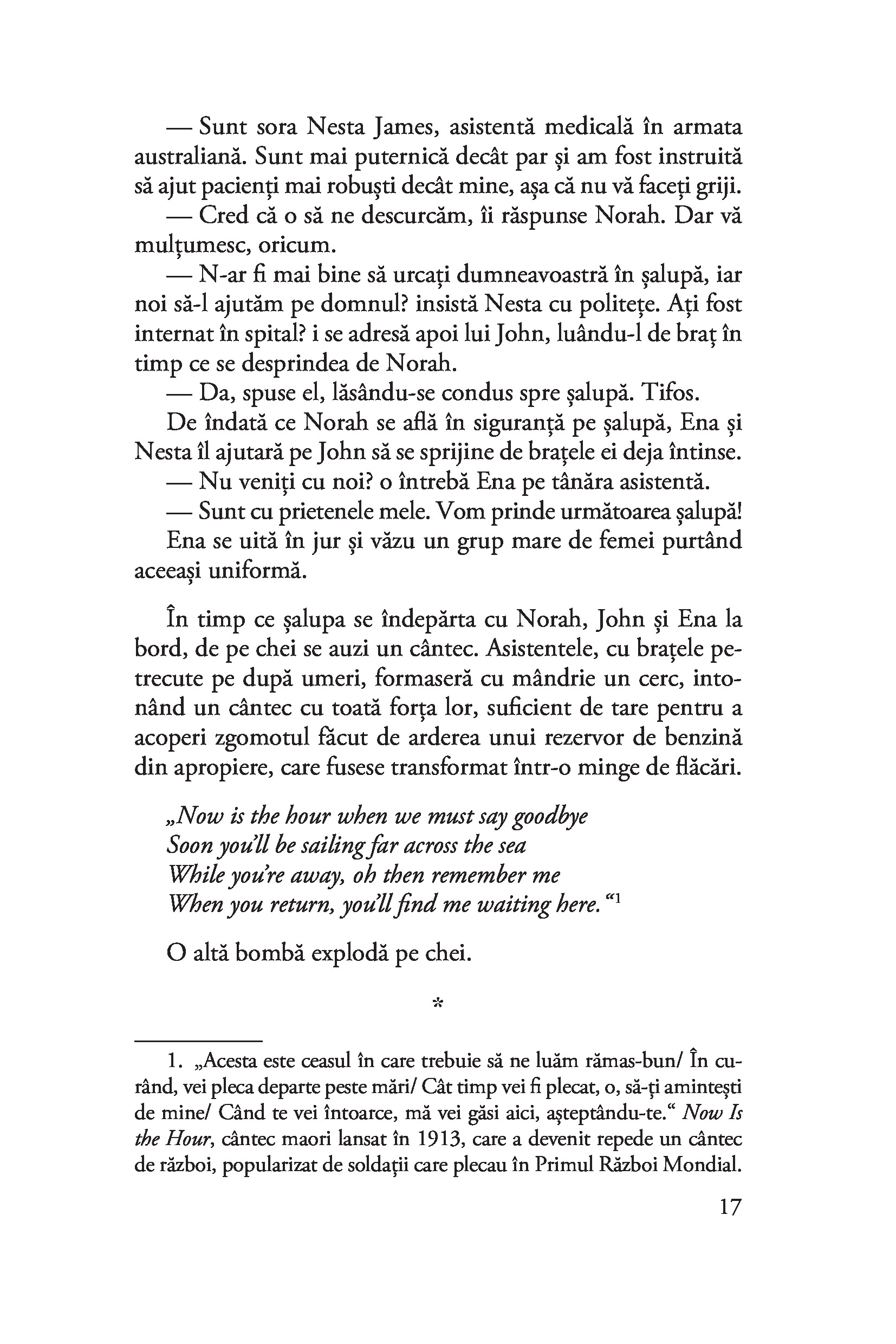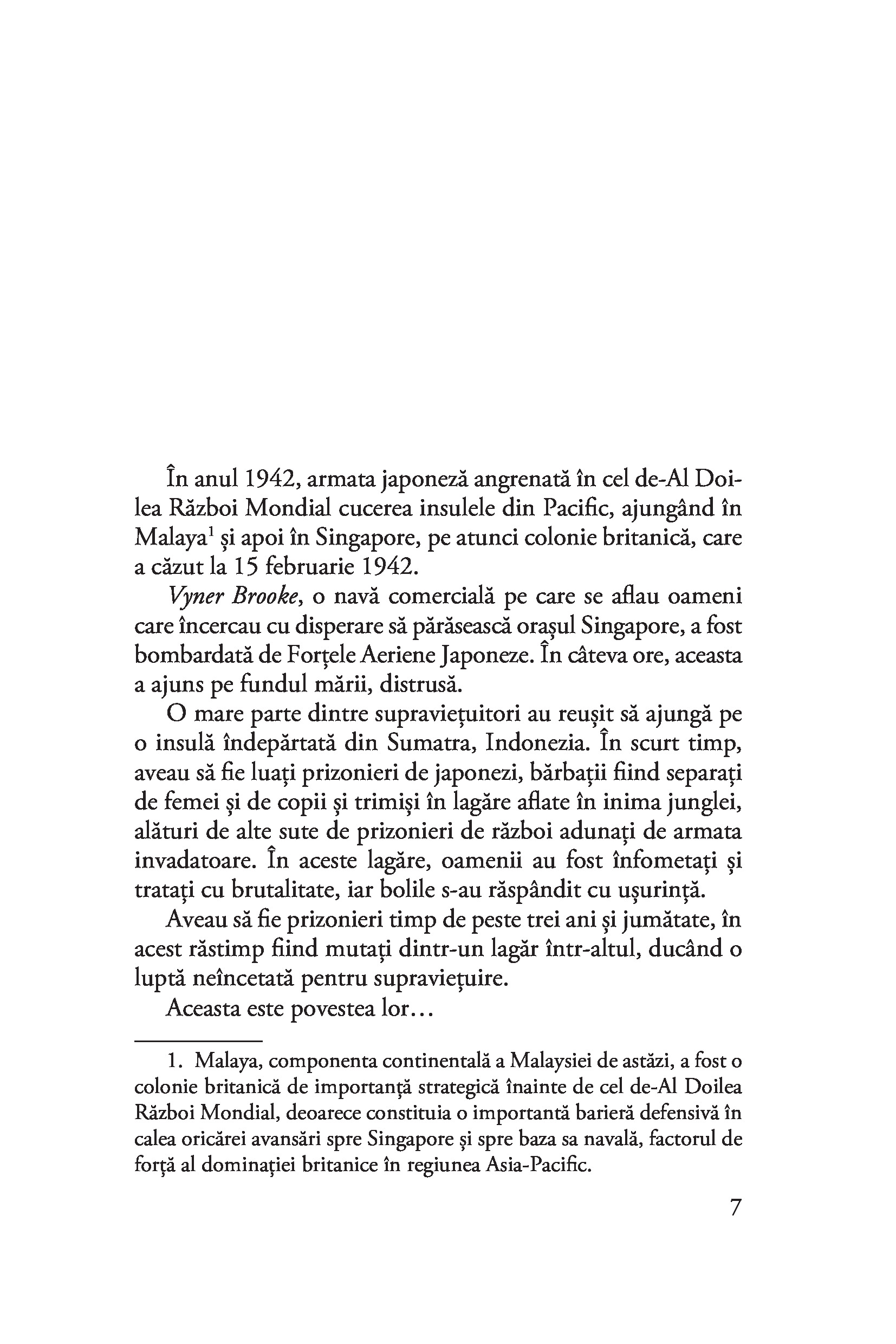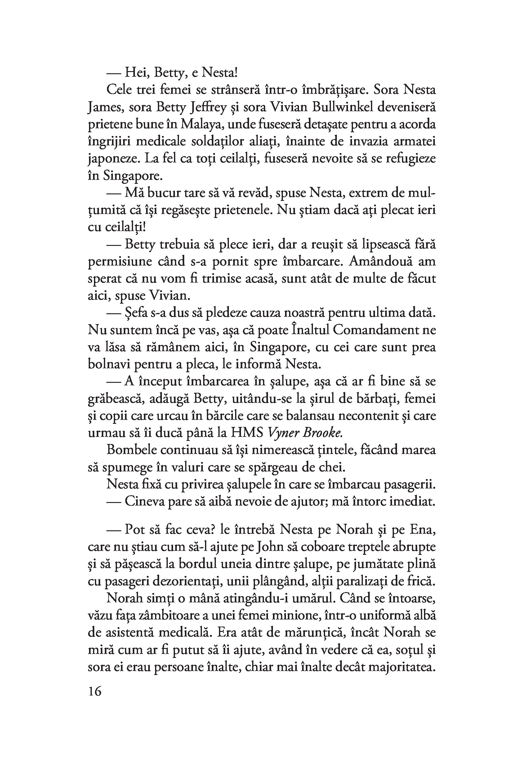 Sora Nesta James, o asistentă medicală australiană, s-a înrolat pentru a aduce alinare, iar când Singapore cade în mâinile japonezilor, ea și colegele ei se alătură sutelor de oameni îngroziți care încearcă să părăsească orașul, în seara de 12 februarie 1942, la bordul vasului comercial Vyner Brooke. Două zile mai târziu, nava este bombardată în largul coastei Indoneziei și, în doar câteva ore, zace pe fundul mării. Câți dintre cei care au sperat că aceasta va fi salvarea lor vor reuși să supraviețuiască? Va fi prizonieratul în lagărele japoneze testul suprem al încrederii în puterea binelui și în miracolul muzicii?