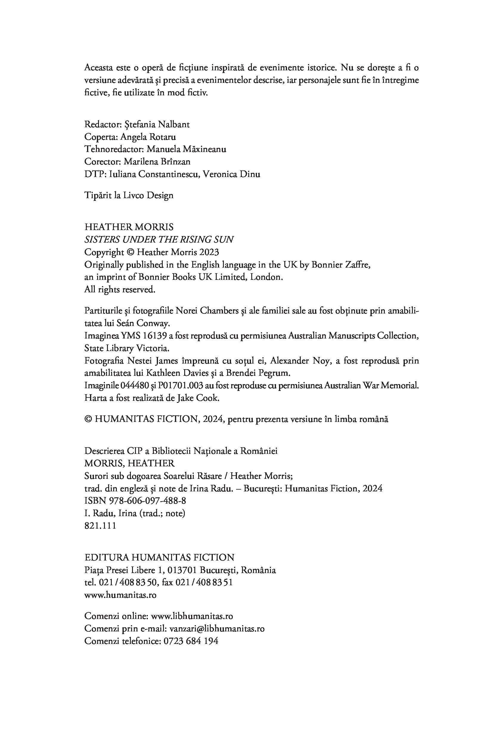 Surori sub dogoarea Soarelui Răsare este o poveste despre devotament, prietenie, reziliență și sacrificiu, bazată pe evenimente reale. Pentru acest roman, Heather Morris s-a întâlnit cu membri ai familiilor protagonistelor supraviețuitoare, care i-au oferit informații și documente inedite.