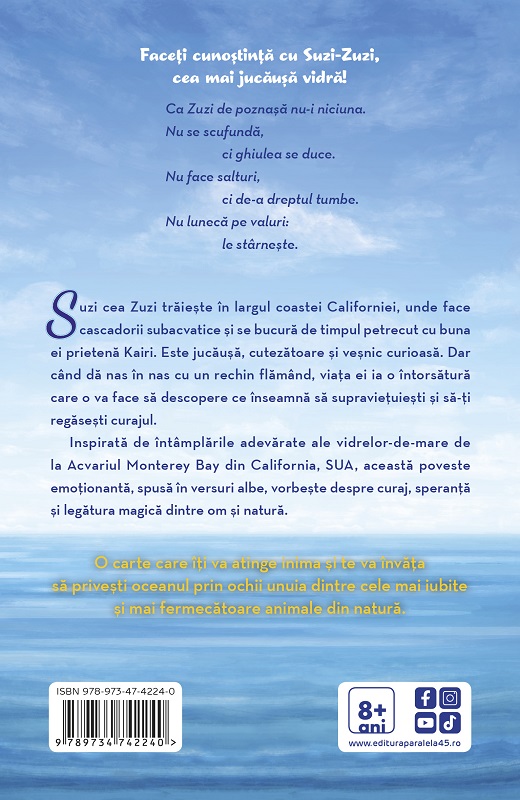 Inspirată de întâmplările adevărate ale vidrelor-de-mare de la Acvariul Monterey Bay din California, SUA, această poveste emoționantă, spusă în versuri albe, vorbește despre curaj, speranță și legătura magică dintre om și natură.
