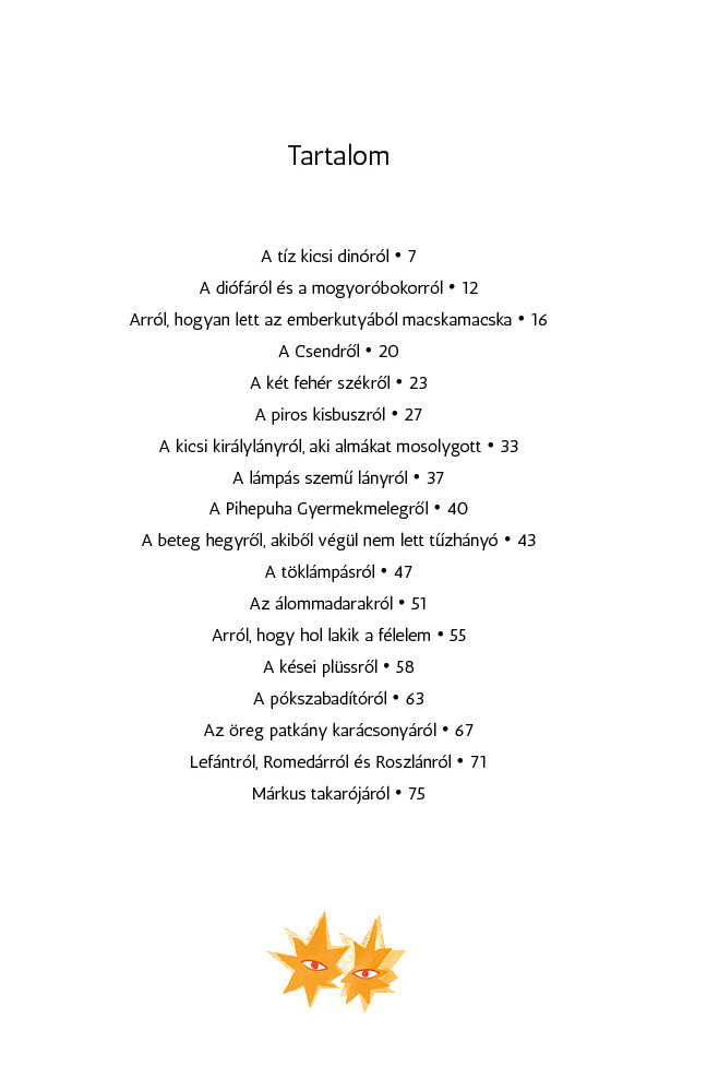 Mi történik akkor, amikor nem könyvből olvas a felnőtt a kicsinek, hanem a szájával mondja a mesét? Jelenlét történik, sokkal intenzívebben, mint olvasáskor. Szívtől szívig, szemtől szemig, szájtól fülig kapcsolódunk. A közös, varázslatos pillanatokból, a sok-sok, elalvás előtti, úton-útfélen elmesélt, rögtönzött mesékből volt, amit sikerült leírnom, és van, ami belénk épülve, minket építő elemekként él tovább. A hosszú évek során lejegyzett mesékből gyűjtöttünk össze egy kötetre valót. Időnként nagyon személyes, máskor egyetemes a hang, de bízom benne, hogy akkor is, amikor személyes, mindenki megtalálja benne az egyetemesen emberit, így a rá is érvényeset, és akkor is, amikor egyetemes, egyenként érinti meg a mesét olvasó, hallgató szívét. Akár inspirációként is szolgálhat ez a könyv, hogy mondj egy mesét a szájaddal, vagy hallgass egy mesét a szíveddel.