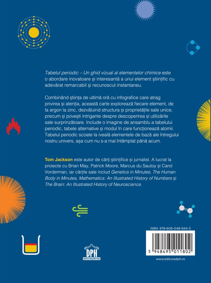 Tabelul periodic. Un ghid vizual al elementelor chimice propune o abordare modernă și accesibilă a unuia dintre cele mai importante instrumente ale științei. Cartea explică modul de organizare a tabelului periodic și semnificația fiecărui element, folosind infografice clare, scheme intuitive și ilustrații atent realizate.