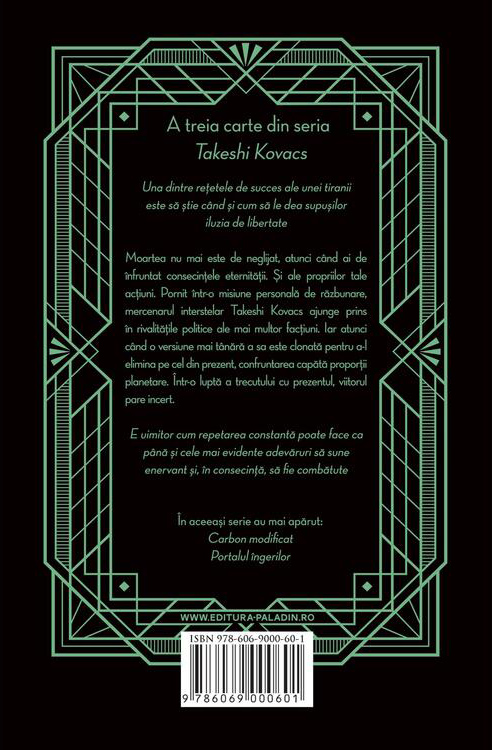 Una dintre rețetele de succes ale unei tiranii este să ştie când și cum să le dea supuşilor iluzia de libertate.Moartea nu mai este de neglijat, atunci când ai de înfruntat consecinţele eternității. Și ale propriilor tale acţiuni. Pornit într-o misiune personală de răzbunare, mercenarul interstelar Takeshi Kovacs ajunge prins în rivalitățile politice ale mai multor facțiuni. Iar atunci când o versiune mai tânără a sa este clonată pentru a-l elimina pe cel din prezent, confruntarea capătă proporții planetare. Într-o luptă a trecutului cu prezentul, viitorul pare incert.