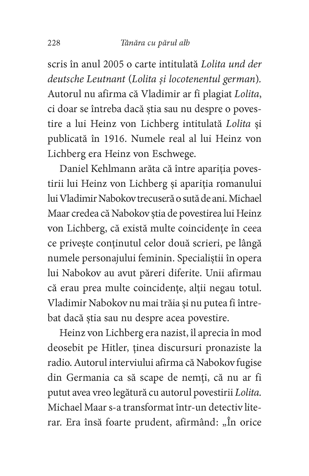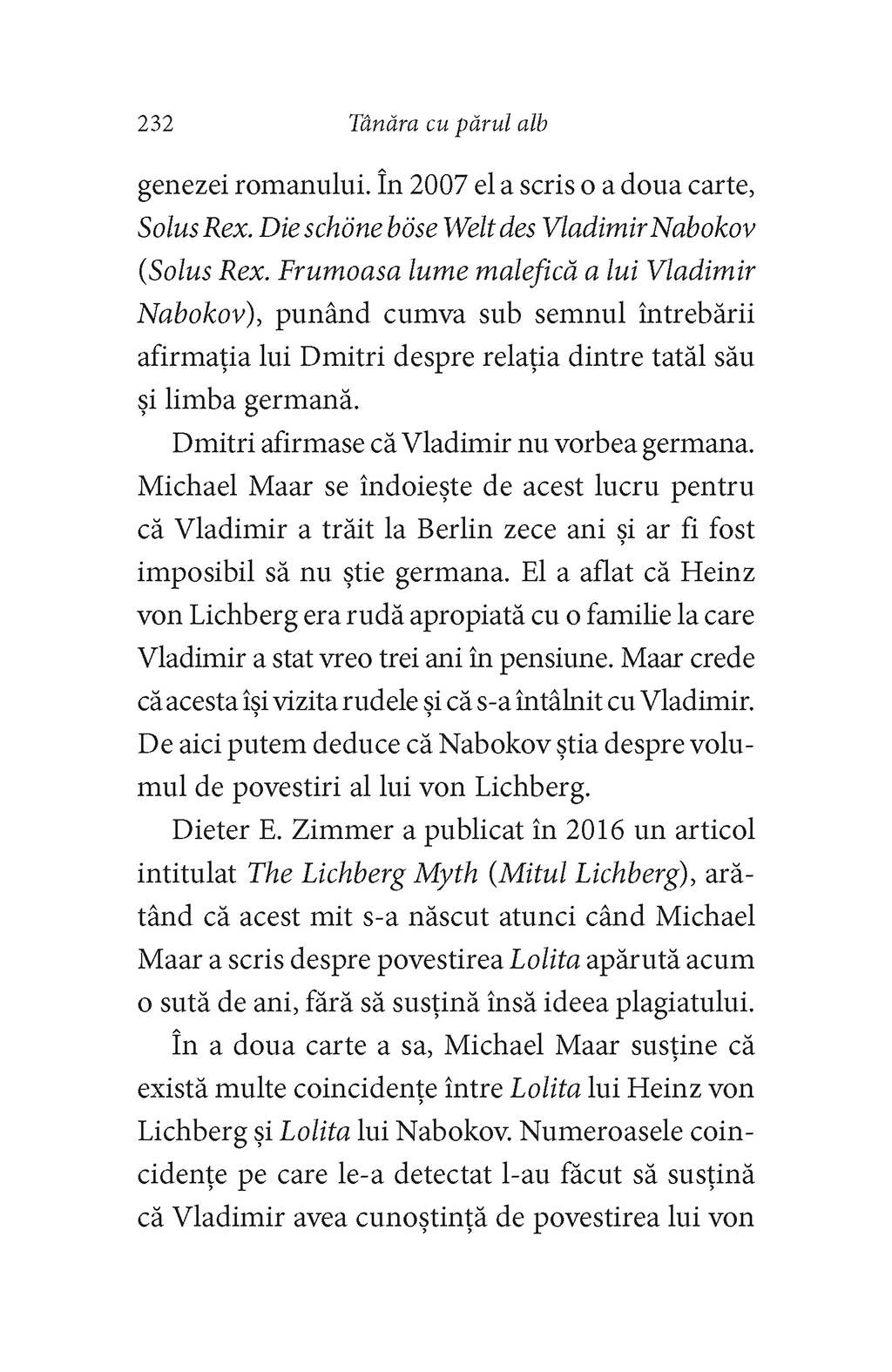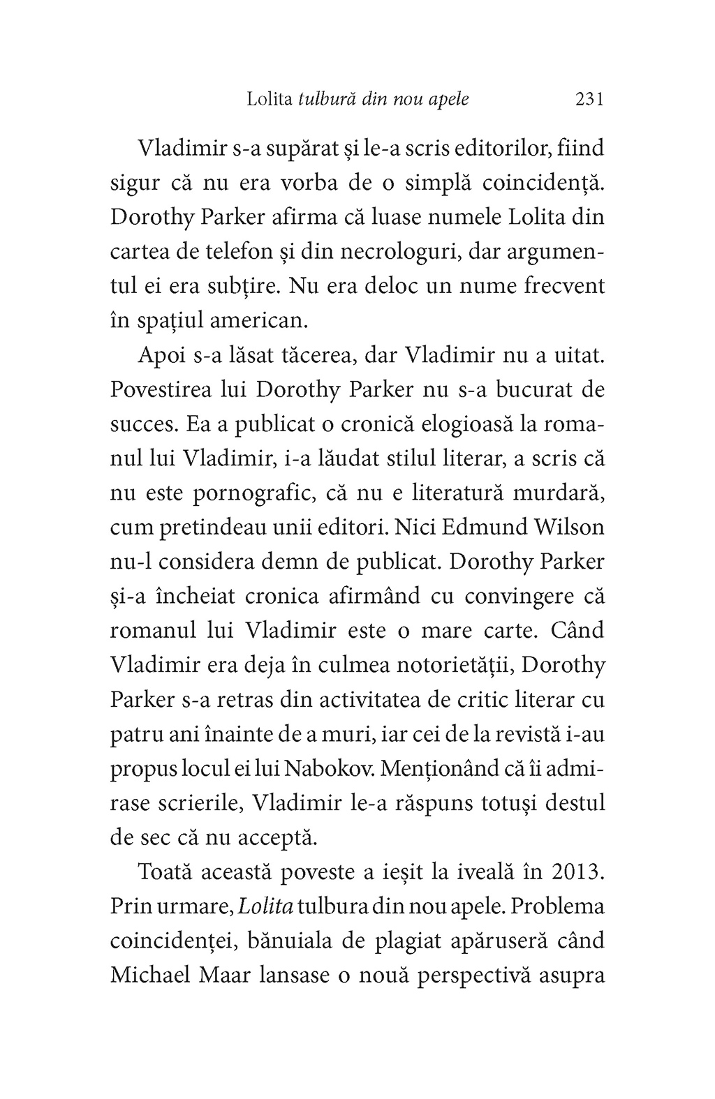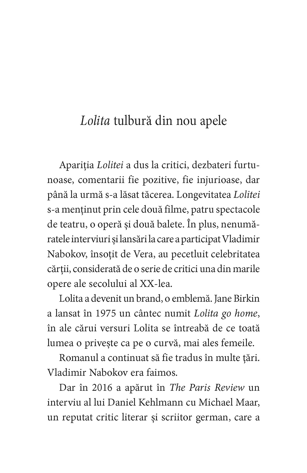 Despre cărțile lui Vladimir Nabokov, unul dintre cei mai importanți scriitori ai secolului XX, s-a scris mult. Dar și viața lui personală i-a preocupat pe cercetători: provenind dintr-o familie aristocratică, a părăsit Rusia natală de teama bolșevicilor și a locuit în Germania, Franța și Statele Unite înainte să se stabilească definitiv în Elveția. Datorită personalității charismatice, a avut foarte mulți admiratori. Și iubite. Cu toate acestea, a rămas alături de Vera, cea care i-a fost soție timp de 52 de ani. Cei interesați de viața lor de familie au la dispoziție numeroasele interviuri ale lui Vladimir, scrisorile sale către Vera, însă nu și vocea Verei. Vera a stat mereu în umbra soțului ei, și-a distrus scrisorile destinate acestuia și a păstrat o tăcere totală în privința relației lor. Ca femeie, ea pare că nu există în acest cuplu... Încercînd să înțeleagă ce anume i-a făcut să rămînă împreună atîta timp, Aurora Liiceanu analizează, pe lîngă operele lui Vladimir Nabokov, articole și cărți despre cei doi, dar și mărturiile fiului lor, Dmitri. Vladimir s-a îndrăgostit de mai multe femei. Despre unele iubiri a scris, pe altele le-a amintit în treacăt ca fiind simple aventuri neimportante. Vera i le-a tolerat pe toate și l-a susținut întotdeauna necondiționat. De ce? Un răspuns, spune Aurora Liiceanu, ar putea fi personalitățile lor atît de diferite: el, traversînd cu ușurință granița dintre imaginație și real, ea, puternic ancorată în realitate, complet dedicată proiectului său de viață – acela de a-și ajuta soțul să devină celebru –, convinsă că niciodată nimic nu‑i va despărți.