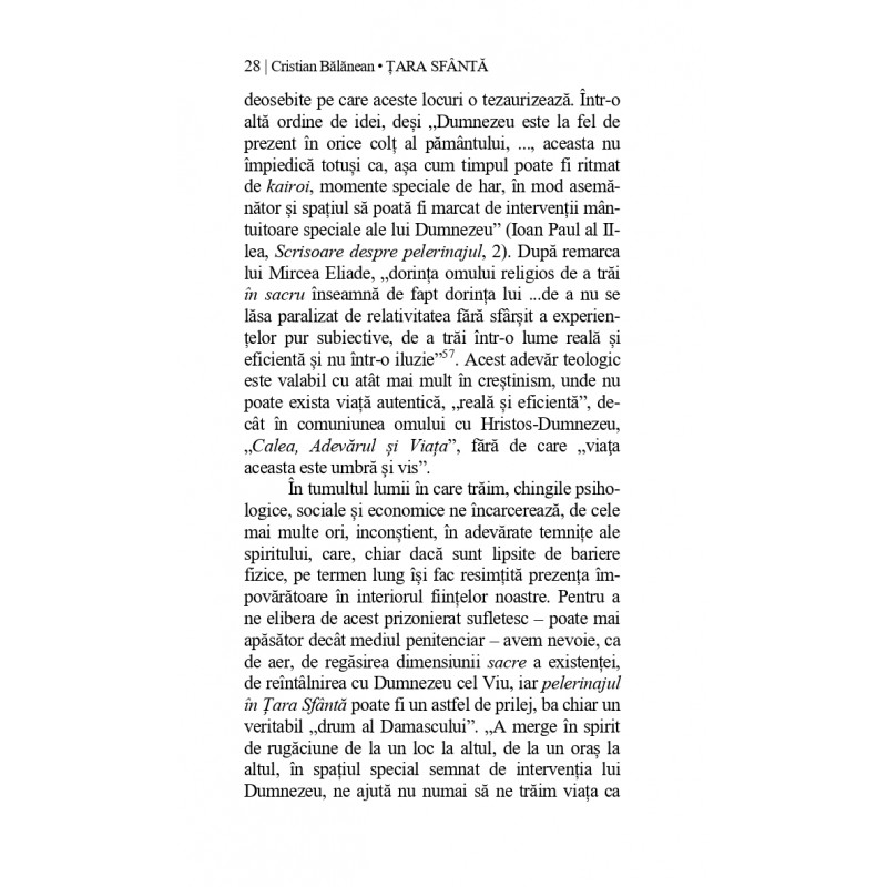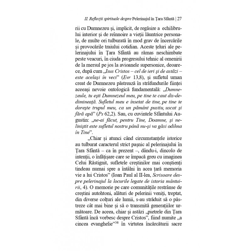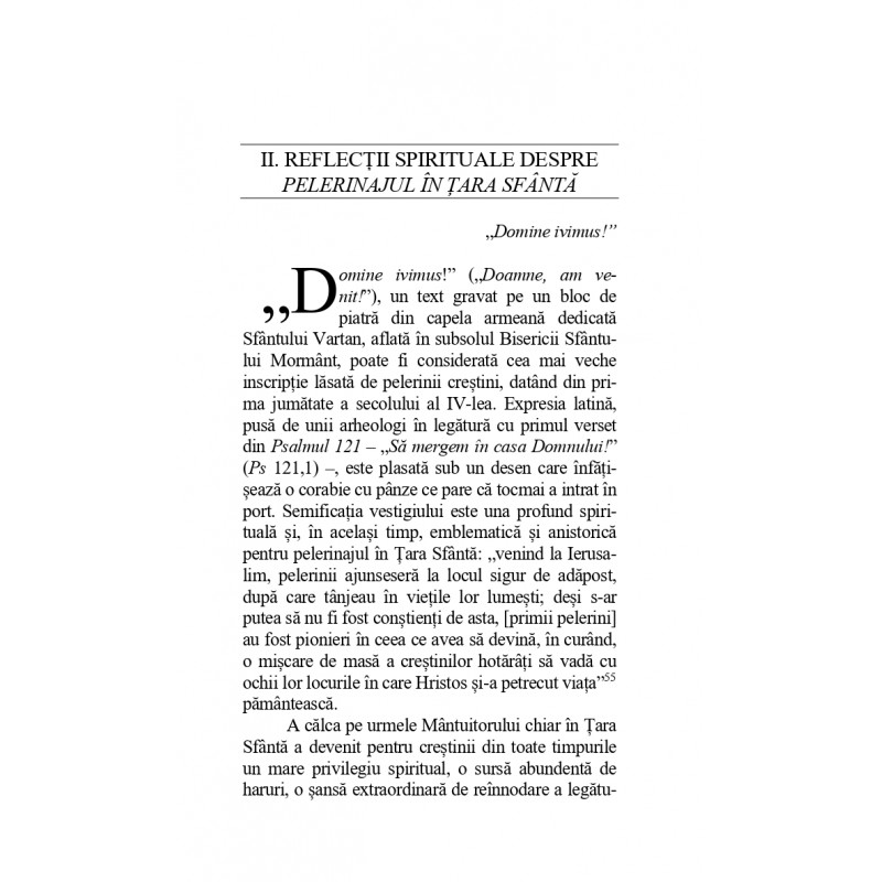 Din acest unghi de vedere, însăși parcurgerea textelor din carte poate reprezenta un pelerinaj imaginar la Locurile Sfinte, însă unul bazat exclusiv pe cuvântul scris, fără imagini adiționale, conceput de această manieră tocmai pentru a rezerva cât mai mult acelei fascinații spontane generate de contactul direct cu obiectivele sacre.