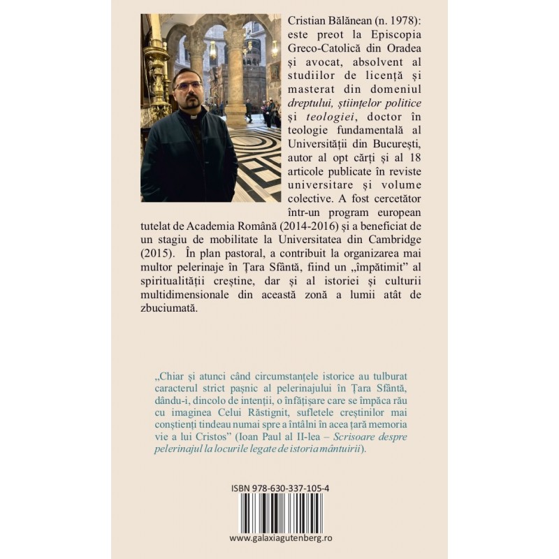În ciuda accesului facil la rețelele wi-fi (mai nou, chiar în autocar), aproape nimeni nu se întorcea acasă din pelerinaj fără o carte ilustrată, în limba română, despre locurile vizitate, dintr-o paletă editorială foarte limitată (3-4 cărți), iar albumele/lucrările în alte limbi erau achiziționate doar de un număr restrâns de pelerini. La acest context particular – determinant pentru apariția acestei cărți – se adaugă piața editorială românească deosebit de săracă în titluri despre Țara Sfântă – atât lucrări generale, cât și studii tematice – și lipsa de atractivitate generală a cititorilor români (2,2%) pentru e-book-urile disponibile online, așa cum reiese dintr-un studiu EUROSTAT din 23.04.2024 (https://ec.europa.eu/eurostat).