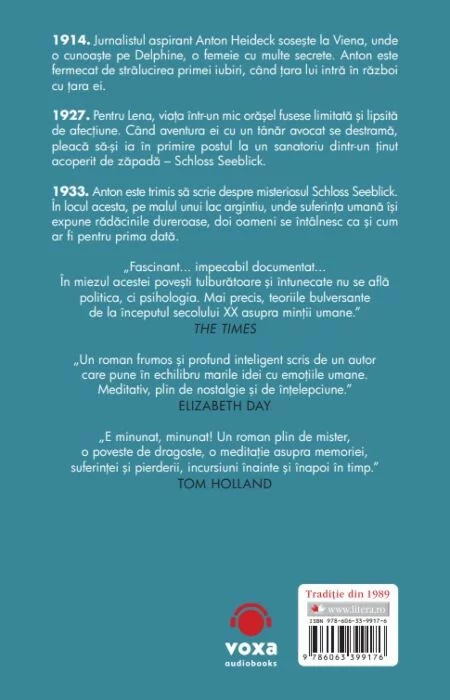 „Un roman frumos şi profund inteligent scris de un autor care pune în echilibru marile idei cu emoţiile umane. Meditativ, plin de nostalgie şi de înţelepciune.” ELIZABETH DAY
