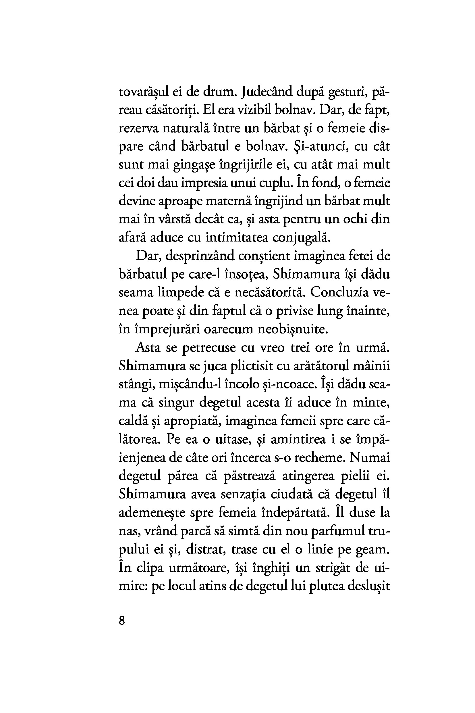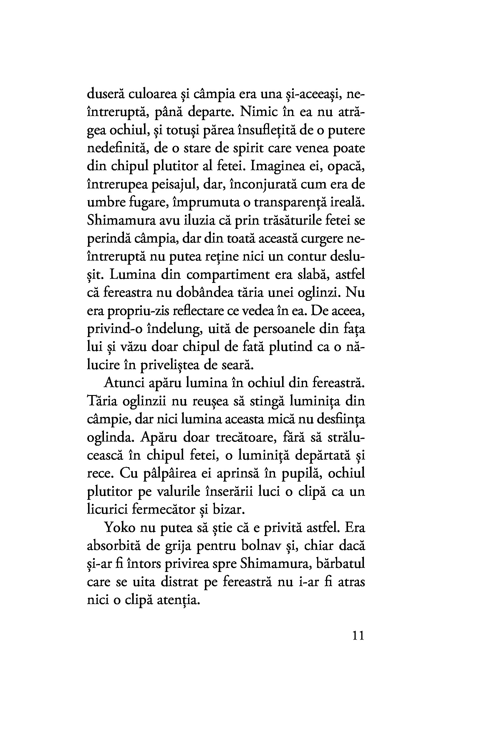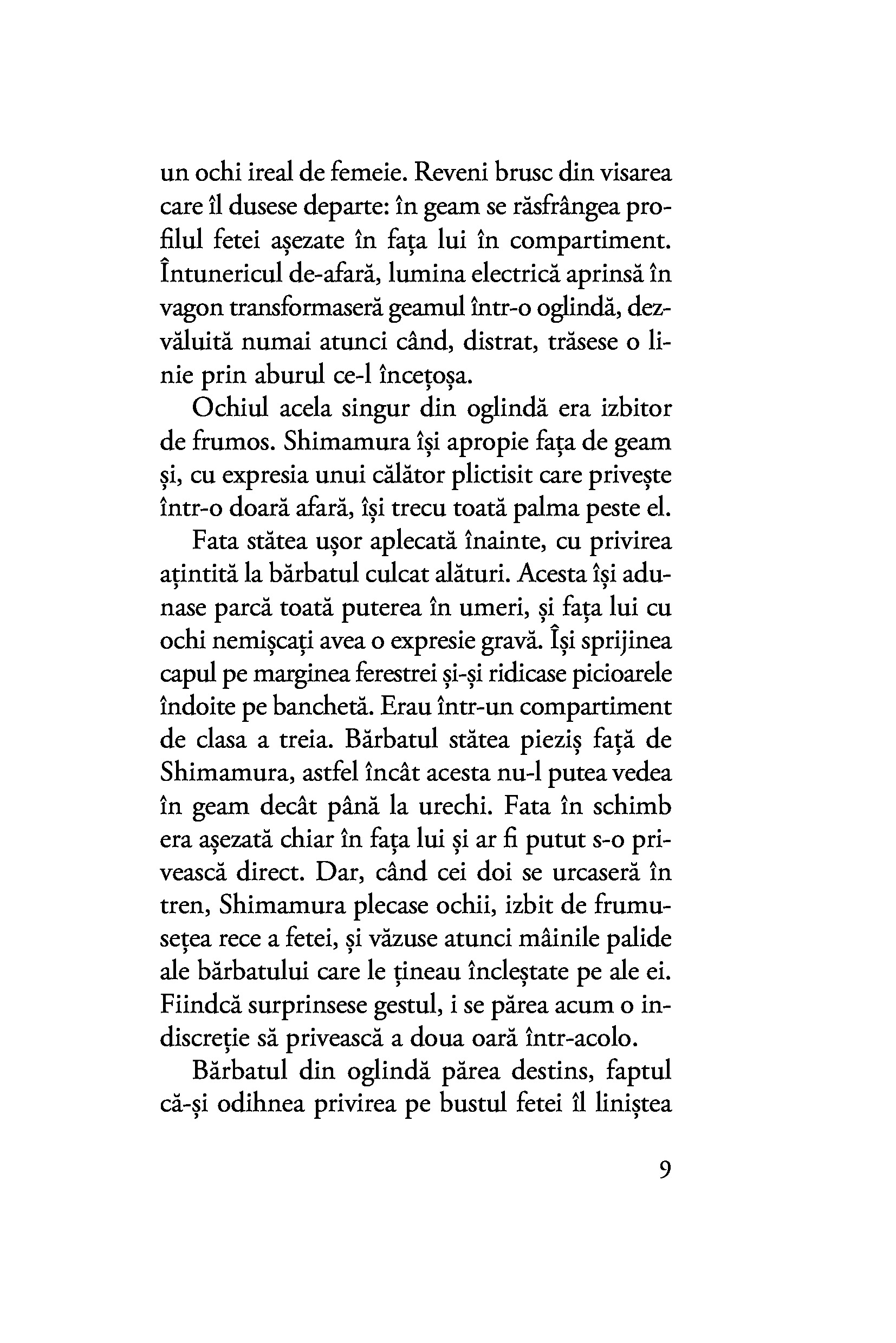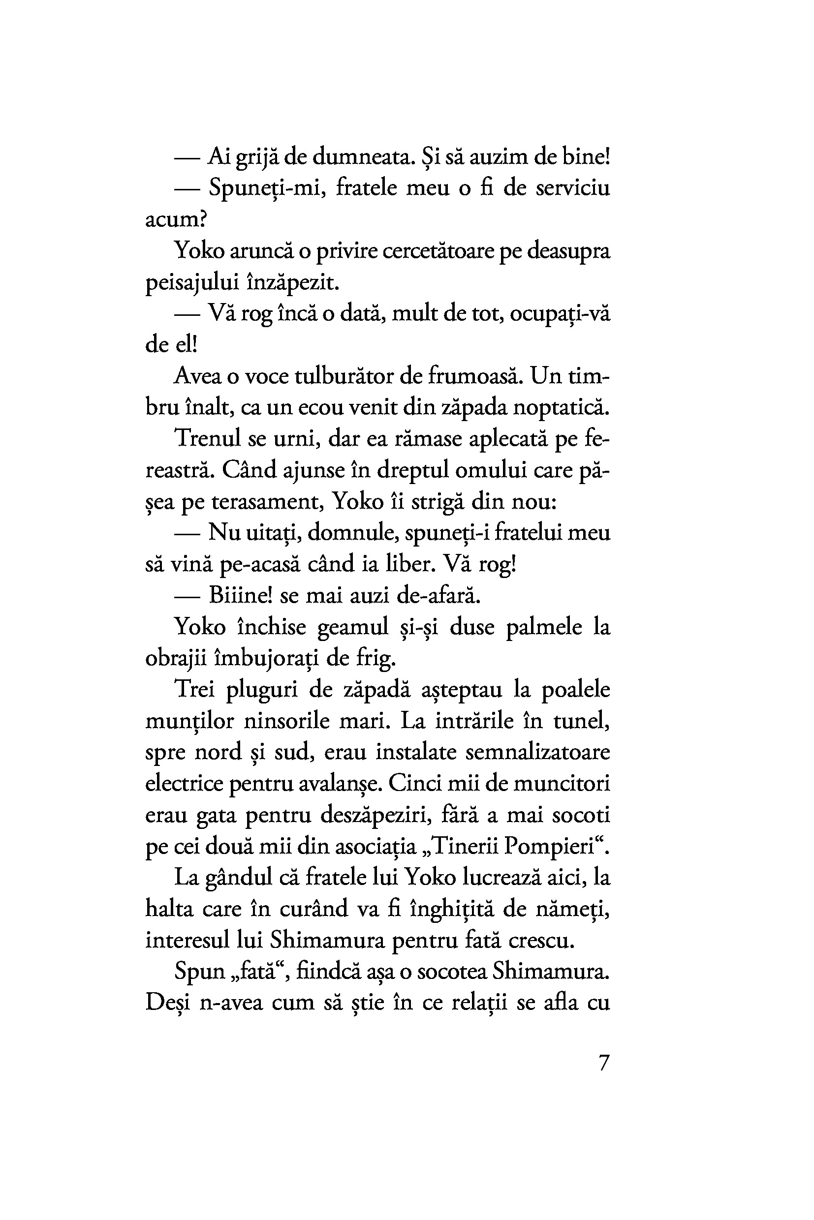 Oscilând între afecțiunea fățișă și necondiționată a gheișei și farmecul misterios al tăcutei Yoko, al cărei chip îl deslușește fugar, Shimamura este mereu un om al inacțiunii, iar pasivitatea lui o condamnă pe Komako să rămână prinsă fără scăpare în păienjenișul relațiilor și obligațiilor din țara zăpezilor.