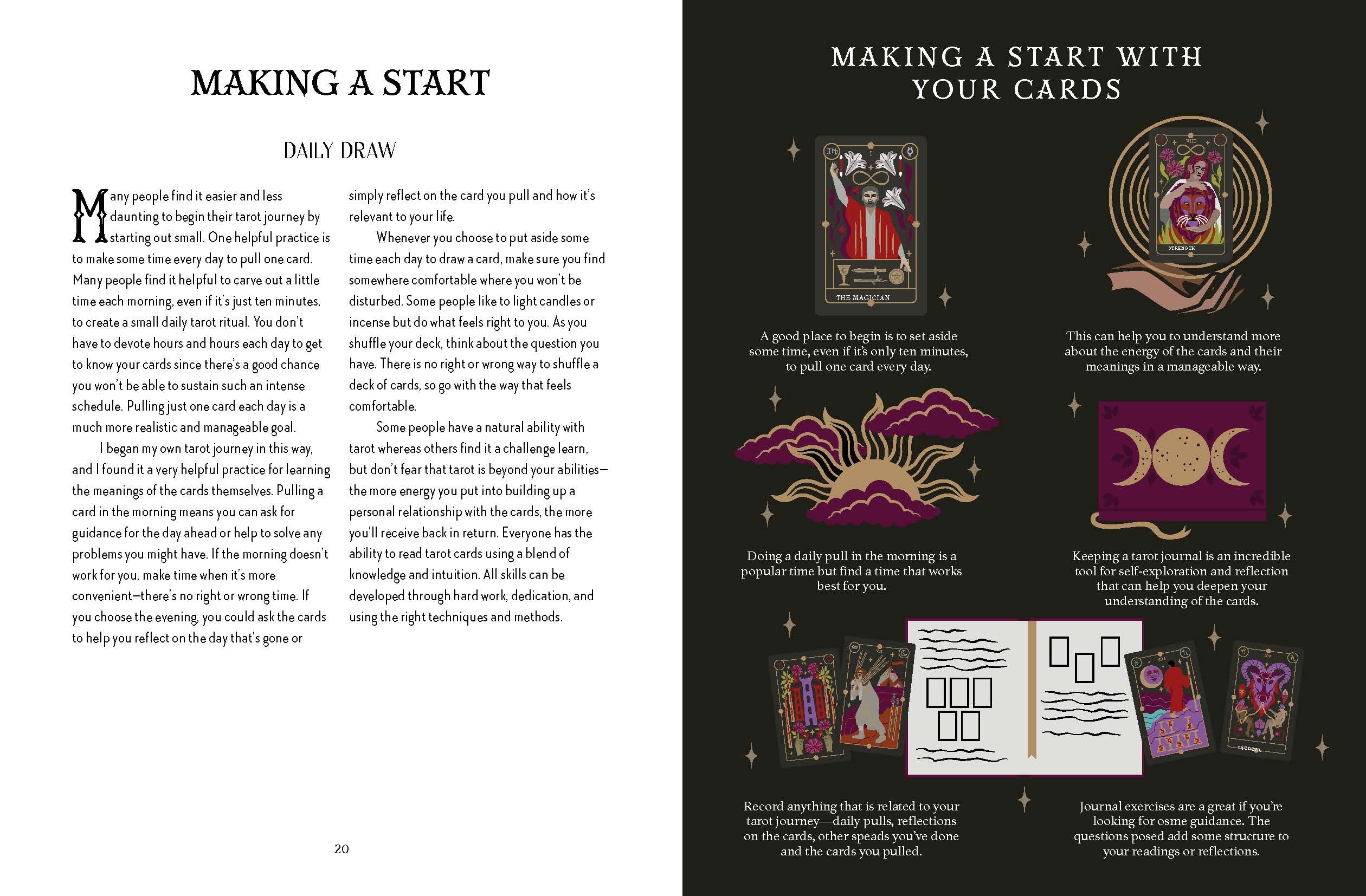 The book's jacket can aslo be flipped and used to practice a simple three-card-spread.