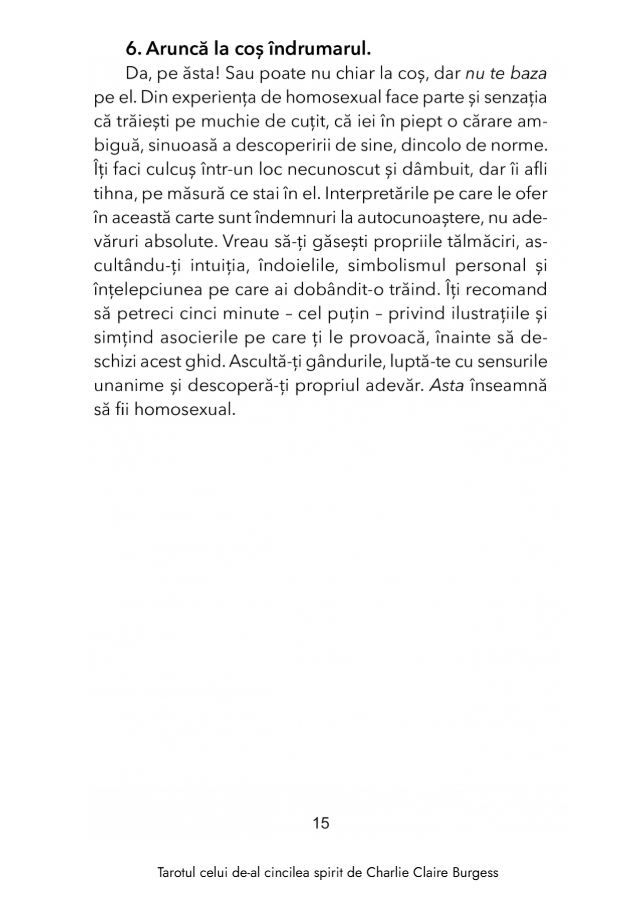 Acest set de carti extinde notiunea de gen prin combinarea formulelor traditionale cu imagini iesite din norma sexului binar. Va incurajeaza sa va adaptati practica la homosexualitate, ascultandu-va intuitia, tinand seama de simbolismul personal si de experienta voastra de viata. Asta inseamna sa gandesti homo.