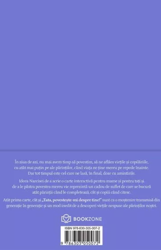 Atât prima carte, cât și „Tata, povestește-mi despre tine” sunt ca o moștenire transmisă din generație în generație, și un mod inedit de a descoperi viețile nespuse ale părinților noștri.