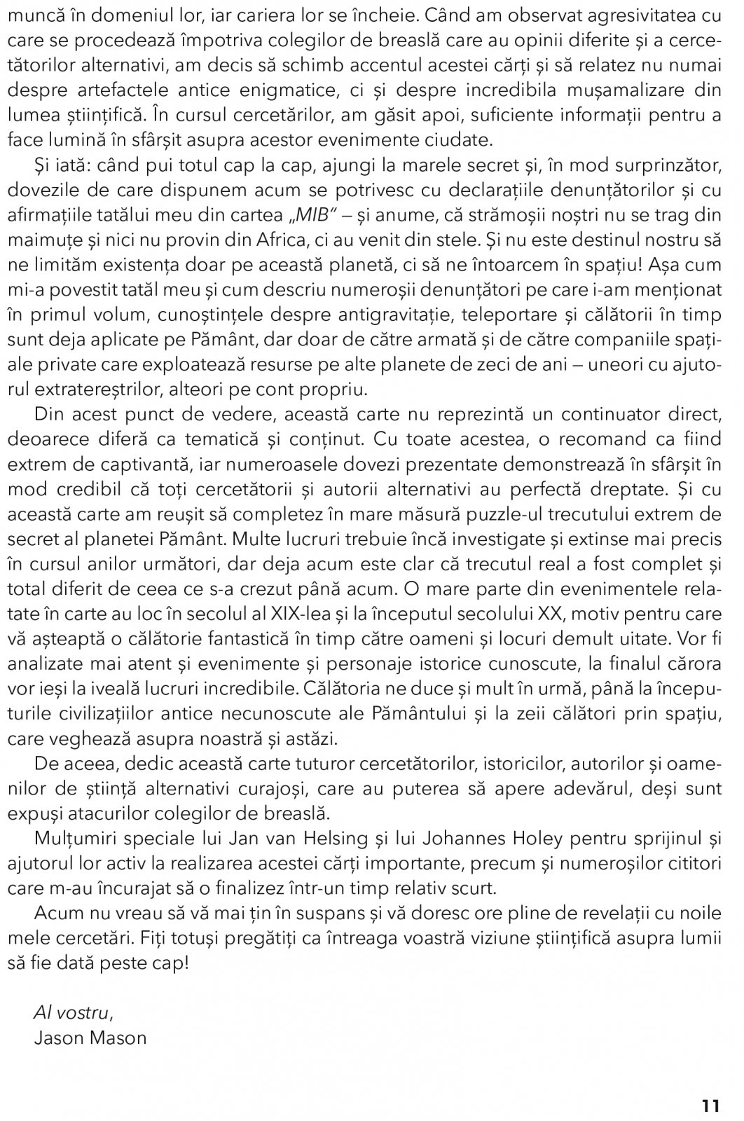 In MiB – Volumul 1, informatori curajosi au relatat detalii despre un program spatial secret incredibil, baze extraterestre pe Pamant si baze terestre pe Luna, Marte si alte planete. In volumul 2, Jason Mason prezinta dovezi care sustin aceste afirmatii: