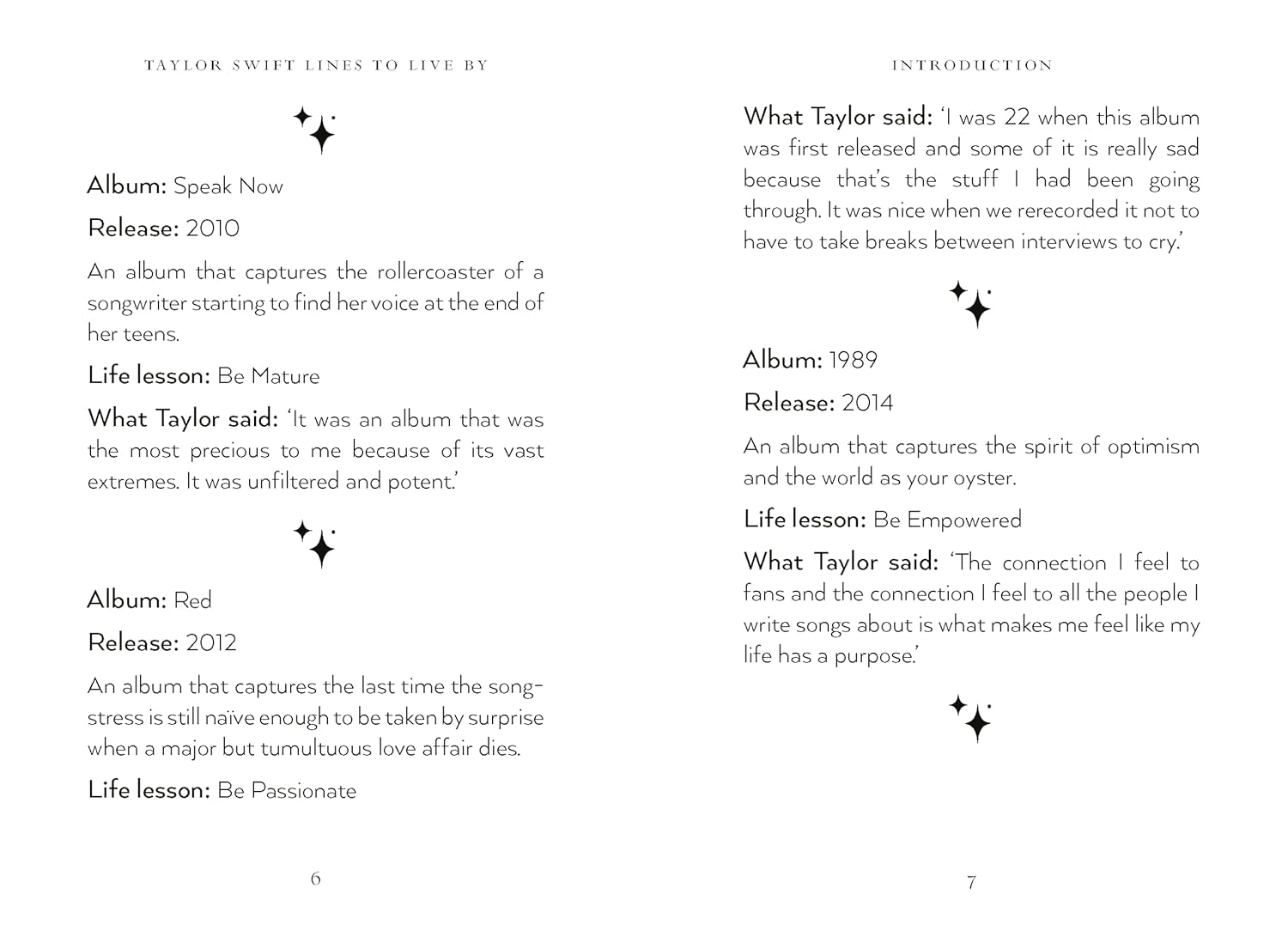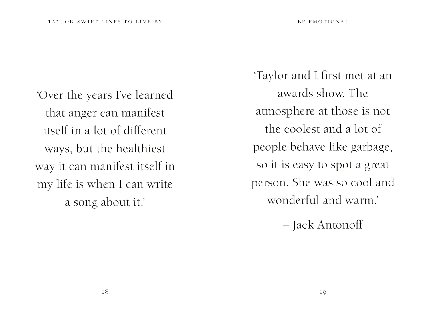 Organised into ten life lessons that have shaped Taylor's eras, this collection of quotes will inspire swifties to be creative, emotional and rebellious.