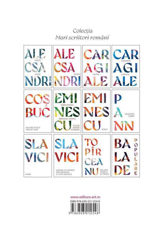Alte titluri de Vasile Alecsandri:Poezii alese , Editura ART, colecţia Mari scriitori români.