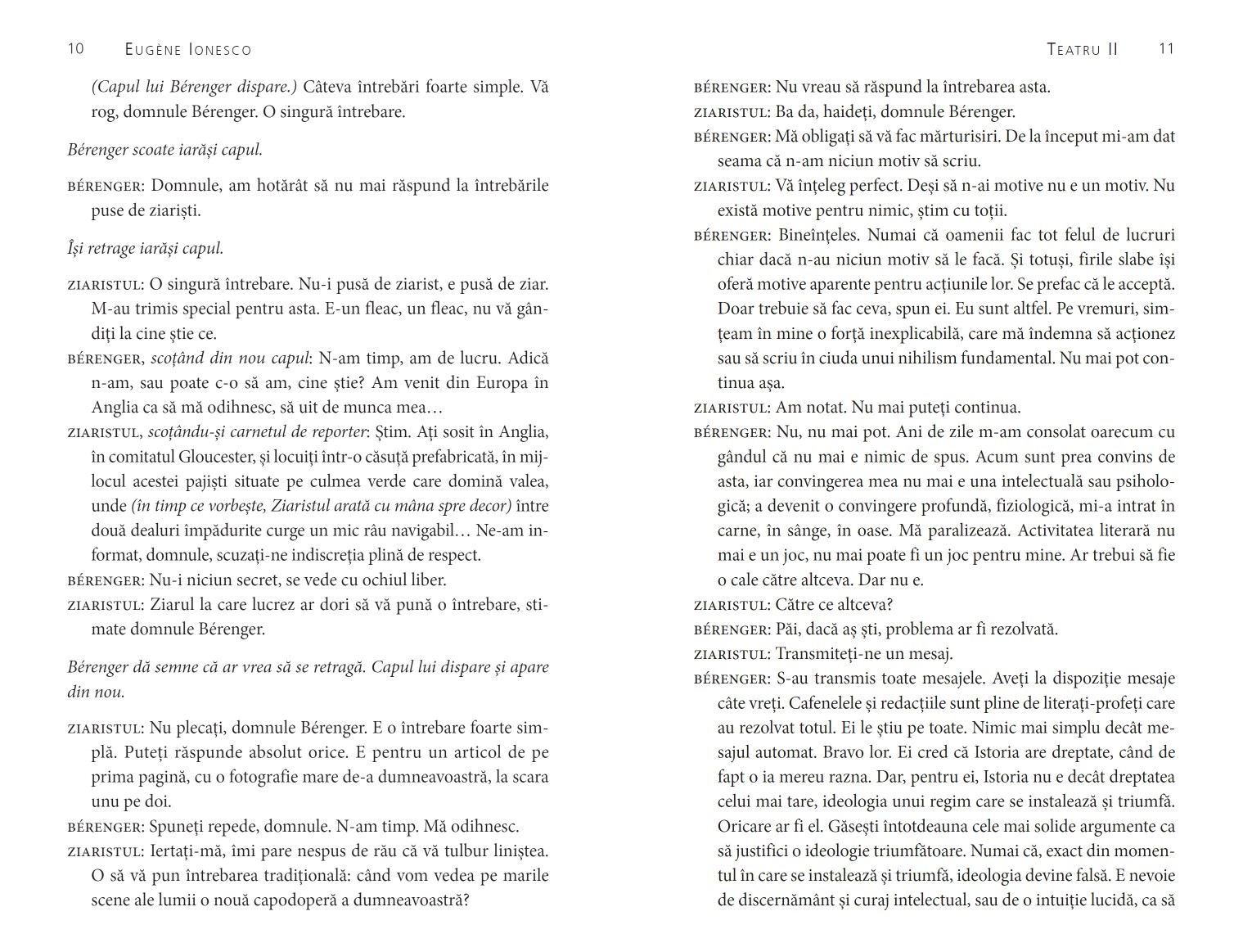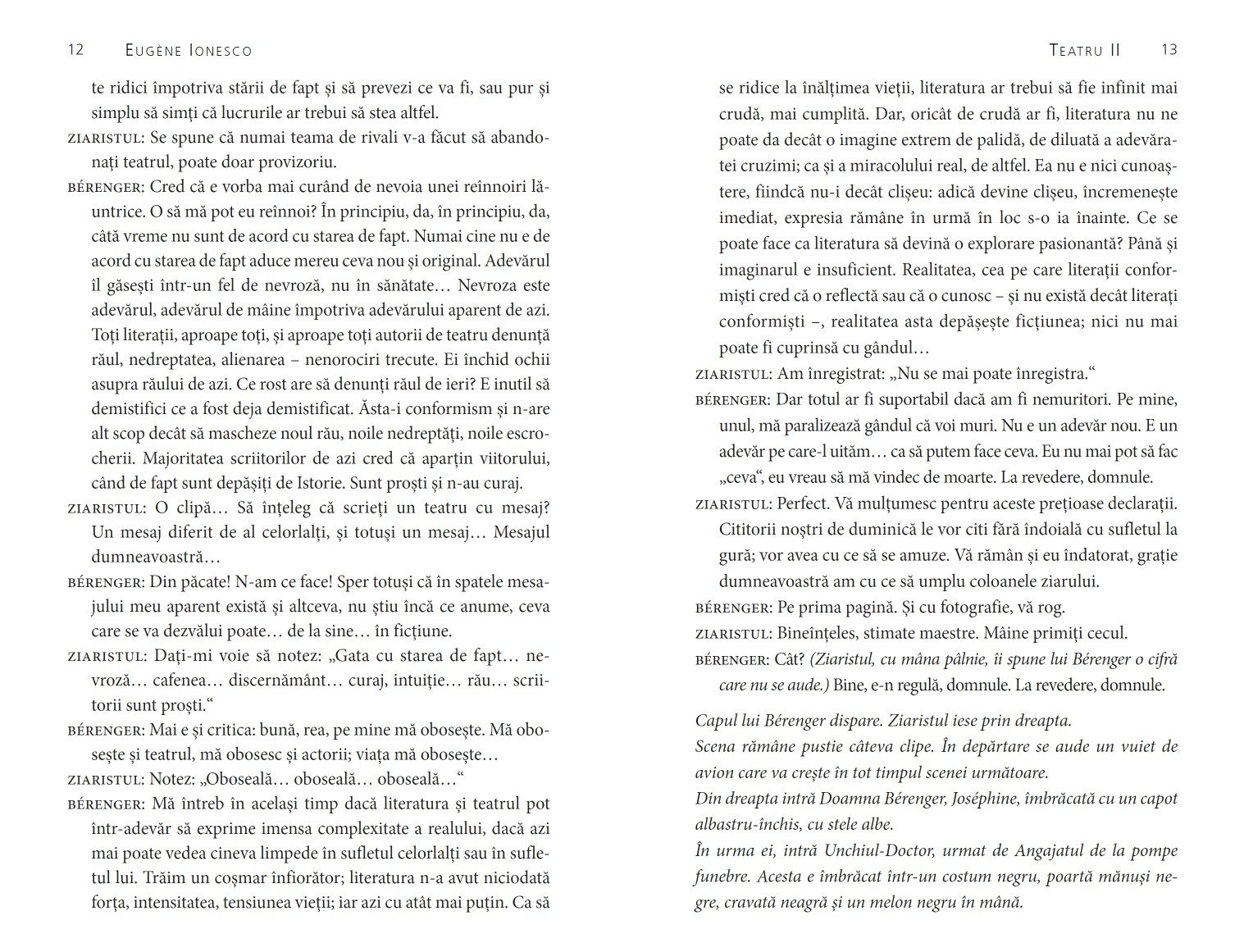 Îmi era frică de teatrul absurdului, de această creație specială a lui Eugène Ionesco, pentru că nu înțelegeam care putea fi absurditatea unui text, și, dacă exista această absurditate, de ce s-o jucăm? Când am fost distribuit în Regele moare, am fost surprins de umanitatea textului, care m-a copleșit și care m-a făcut să-mi dau seama de profunzimea lui Ionesco. Eram deja la o vârstă la care moartea nu mă mai speria și munca la acest rol m-a făcut să înțeleg cât de prezentă este ea în viața mea. Bérenger mi-a devenit prieten apropiat și l-am însoțit cu multă înțelegere pe drumul lui spre moarte.