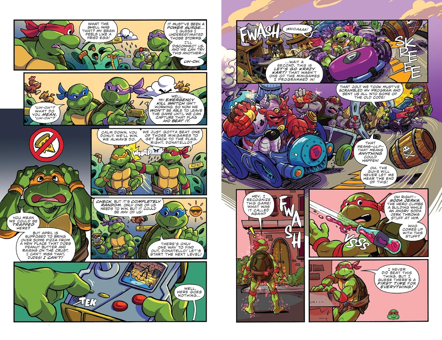 Turtle Power is back—with all the cowabunga chaos of the '90s animated series, collected in one totally radical volume! This all-in-one compact edition brings you the complete Teenage Mutant Ninja Turtles: Saturday Morning Adventures saga—straight from the sewers and back onto your bookshelf! Rejoin Leo, Mikey, Donnie, and Raph as they battle pizza zombies, thwart evil election schemes, get trapped in a dream dimension, and even go on trial for breaking the fourth wall! With appearances by Shredder, Krang, Chrome Dome, the Punk Frogs, Mister Ogg, and the return of the Rat King, this collection is wall-to-wall action, jokes, and classic Turtle charm. Whether you're a longtime fan of the 1987 cartoon or introducing a new generation to the heroes in a half shell, this omnibus is your all-access pass to TMNT mayhem! This omnibus collects Teenage Mutant Ninja Turtles: Saturday Morning Adventures (Series 1) issues #1-4, Teenage Mutant Ninja Turtles: Saturday Morning Adventures (Series 2) issues #1-8, plus the Endless Summer and Halloween Special one-shots by writer Erik Burnham and artists Tim Lattie, Jack Lawrence, Dan Schoening, and Sarah Myer.